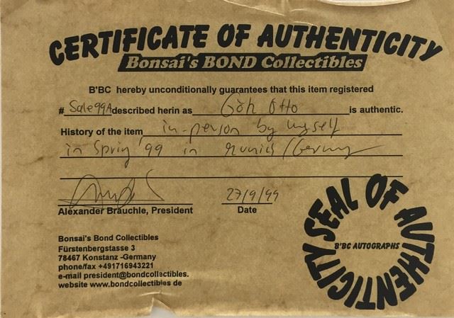 007 James Bond "Tomorrow Never Dies" (1997) Stamper (Gotz Otto) signed photo with COA from Bonsai's Bond Collectibles. (8"x10").