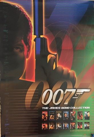 007 The James Bond DVD/ VHS collection rolled poster featuring Pierce Brosnan. (27"x41") Several small tears at the top left side with rippled edges.