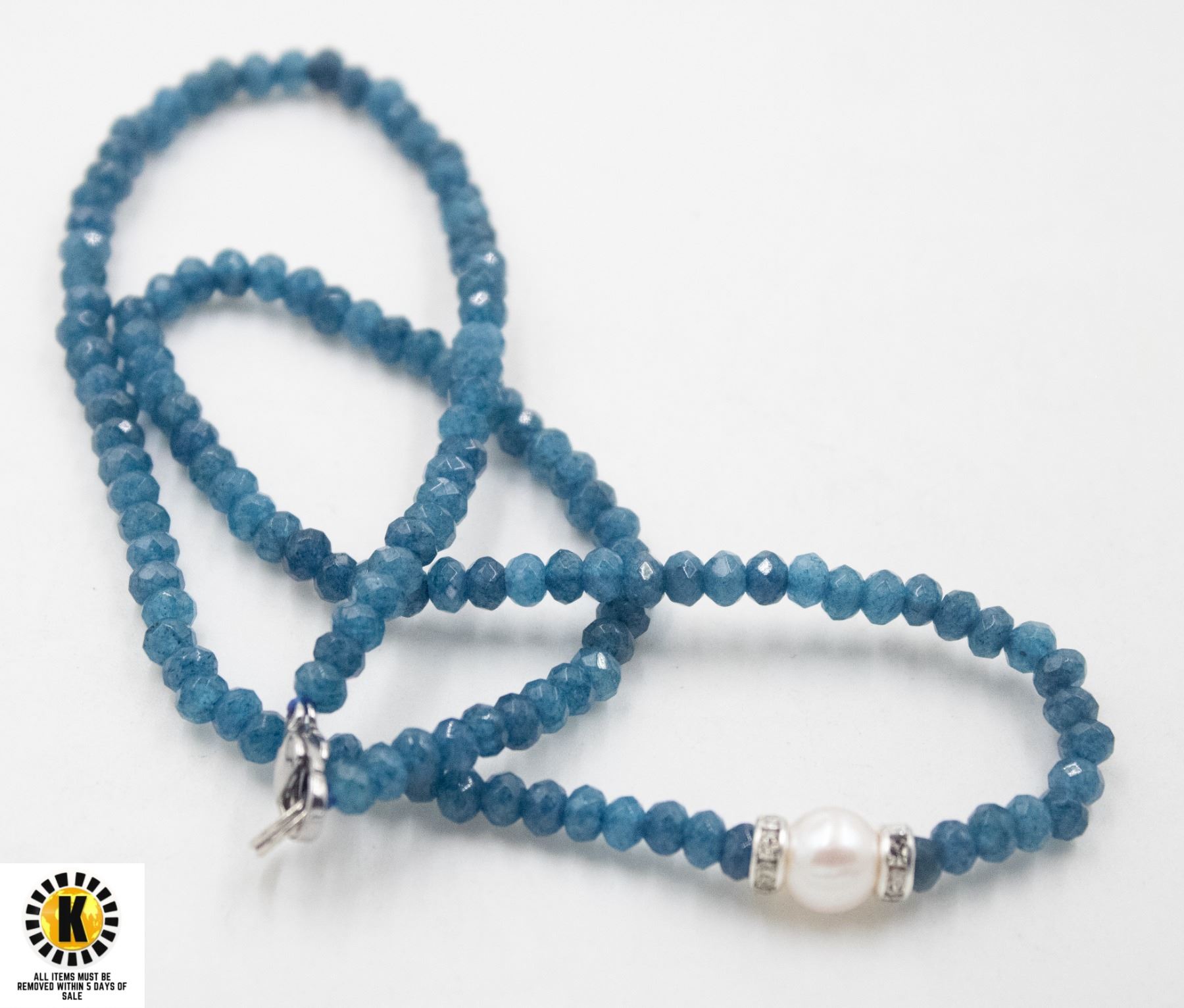 #01-NATURAL BLUE APATITE , PEARL NECKLACE 18"