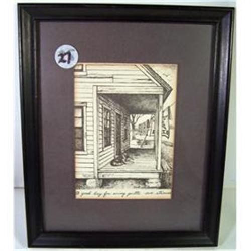 <!-- BEGIN: ICOLLECTOR - EBAY LOT HTML CODE --><style type='text/css'> #icoll_images_thumbnails, #icoll_images_mainimage, #icoll_otherlots { display: none; } div { font-family: arial, verdana, helvetica; } img { border: none; } .icoll_heading_title { background-color: #EFEFFF; color: #000; font-family: arial, verdana, helvetica; font-size: 12pt; font-style: normal; font-weight: bold; } </style><style type='text/css'>@import url(http://www.icollector.com/css/ebay/ebaylot_20070703.css);</style><script language='javascript' type='text/javascript'>function icollfunc_getelement(element_id) { var tmpelement = null; if(document.getElementById) tmpelement = document.getElementById(element_id); if(tmpelement == null) tmpelement = document[element_id]; return tmpelement; }var icollvar_mainpic = null; function icollfunc_initimages() { icollfunc_getelement('mainPicture').style.display = 'none'; icollvar_mainpic = icollfunc_getelement('icoll_images_mainimage'); var body_onload = document.body.attributes['onload']; document.body.setAttribute('onload', (body_onload ? body_onload.nodeValue : '') + 'icollfunc_fixoperaimgbug();'); }function icollfunc_changeimage(imgurl) { if(icollvar_mainpic != null) icollvar_mainpic.src = imgurl; }function icollfunc_fixoperaimgbug() { if(window.opera) { var imgobjs = icollfunc_getelement('icoll_images_thumbnails').getElementsByTagName('img'); for(var i=0; i<imgobjs.length; i++) { var w = imgobjs[i].clientWidth; if(w > 0) imgobjs[i].style.width = w + 'px'; } } }</script><script language='javascript' type='text/javascript'> var useragent = escape(navigator.userAgent); var appname = escape(navigator.appName); var dateobj = new Date(); var datetime = escape(dateobj.getFullYear()+'-'+(dateobj.getMonth()+1)+'-'+dateobj.getDate()+' '+dateobj.getHours()+':'+dateobj.getMinutes()); var referrer = ''; if(document.referrer && document.referrer != null) referrer = escape(document.referrer); new Image().src = 'http://www.icollector.com/stats/ebaylot.ashx?id=7619711&ua='+useragent+'&an='+appname+'&dt='+datetime+'&tz='+dateobj.getTimezoneOffset()+'&re='+referrer;</script><div id='icoll_images'><div id='icoll_images_prev'><a href='http://cgi.liveauctions.ebay.com/ws/eBayISAPI.dll?ViewItem&item=250201152973'><img src='http://photos.icollector.com/photos/harrisonauctions/5054/5054_0026_1_md.jpg' alt='' /><img src='http://icollector.com/graphics/ebay_leftarrow.gif' alt='' class='arrow' /></a><div id='icoll_images_prev_info'>Prev Lot</div></div><div id='icoll_images_next'><a href='http://cgi.liveauctions.ebay.com/ws/eBayISAPI.dll?ViewItem&item=250201152987'><img src='http://photos.icollector.com/photos/harrisonauctions/5054/5054_0028_1_md.jpg' alt='' /><img src='http://icollector.com/graphics/ebay_rightarrow.gif' alt='' class='arrow' /></a><div id='icoll_images_next_info'>Next Lot</div></div><div id='icoll_images_thumbnails'><a href='http://photos.icollector.com/photos/harrisonauctions/5054/5054_0027_1_lg.jpg' target='_blank' onmouseover="icollfunc_changeimage('http://photos.icollector.com/photos/harrisonauctions/5054/5054_0027_1_md.jpg');"><img src='http://photos.icollector.com/photos/harrisonauctions/5054/5054_0027_1_th.jpg' alt='' /></a><div id='icoll_images_thumbnails_info'>Hover thumbnail to view large image below. Click thumbnail to view full image in new window.</div></div><div id='icoll_images_mainimage_container'><img id='icoll_images_mainimage' alt='' src='http://photos.icollector.com/photos/harrisonauctions/5054/5054_0027_1_md.jpg'></div></div><script language='javascript' type='text/javascript'>icollfunc_initimages();</script><div id='icoll_description'>Framed Eve Strause pen and ink Front Porch with Quilt<BR></div><div id='icoll_notices'><div class='icoll_heading_left'></div><div class='icoll_heading'><div class='icoll_heading_title'>Notices</div></div><div class='icoll_heading_right'></div><div id='icoll_notices_info'><a href="http://www.icollector.com/mediapopup.aspx?asid=13410">Link to Audio</a></div></div><div class='icoll_section'><div class='icoll_section_left'><div id='icoll_premium'><div class='icoll_heading_left'></div><div class='icoll_heading'><div class='icoll_heading_title'>Buyer's Premiums</div></div><div class='icoll_heading_right'></div><div id='icoll_premium_info'><ul><li><span id="icoll_premium_info_rate">17%</span> <span id="icoll_premium_info_range">( 0.00 ~ 9999999.00 )</span></li></ul></div></div></div><div class='icoll_section_right'><div id='icoll_taxes'><div class='icoll_heading_left'></div><div class='icoll_heading'><div class='icoll_heading_title'>Taxes</div></div><div class='icoll_heading_right'></div><div id='icoll_taxes_taxrates'><ul><li>FST: 6%</li></ul></div><div id='icoll_taxes_info'></div></div></div></div><div class='icoll_section'><div class='icoll_section_left'><div id='icoll_contactahouse'><div class='icoll_heading_left'></div><div class='icoll_heading'><div class='icoll_heading_title'>Auction House Info</div></div><div class='icoll_heading_right'></div><div id='icoll_contactahouse_info'><img src='http://www.icollector.com/graphics/logos/harrisonauctions_large.gif' alt=''>Harrison Auctions Inc