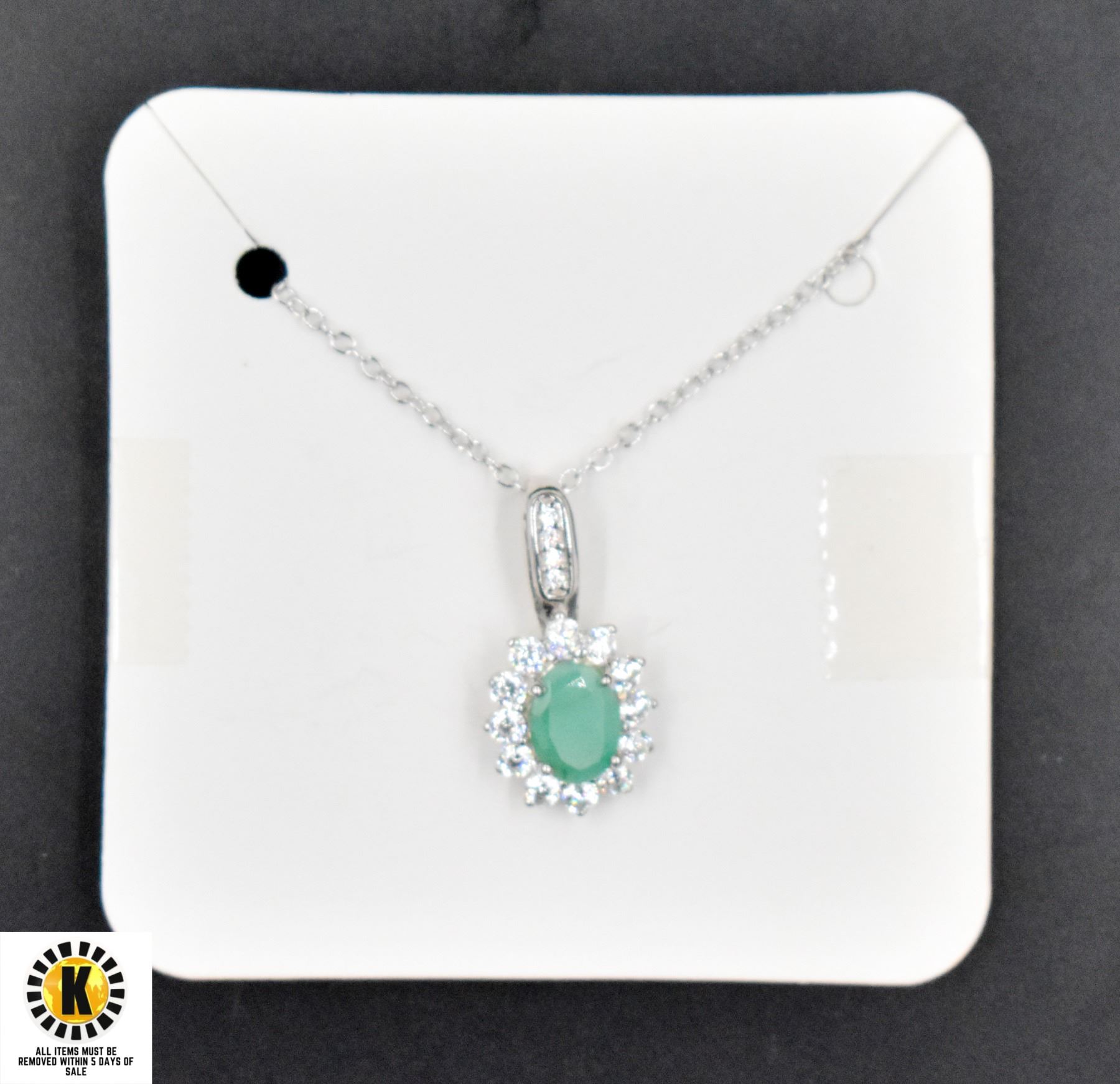 UNHEATED EMERALD/NECKLACE 16"/925 STERLING SILVER