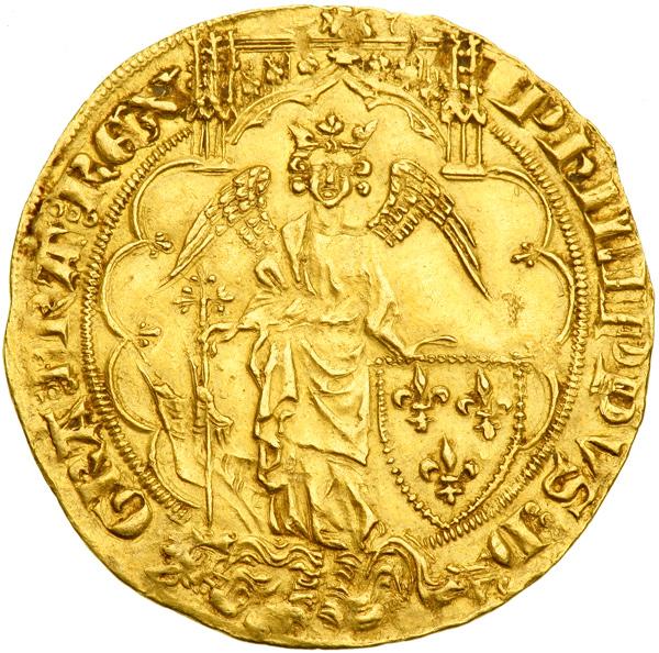 Hammered gold coins were issued by France for over 300 years, ending with the reign of Louis XIII. During this entire period only in 1341 was this type issued with a standing Archangel Michael. A major rarity, historically and symbolically important.