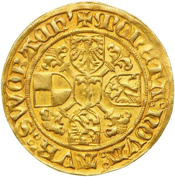 The margraviat of Brandenburg Franken was a creation from the Hohenzollern line. Upon the death of elector Friedrich I, three sons inherited, but only one, Albrecht Achilles, issued gold coins. A very nice medieval striking.