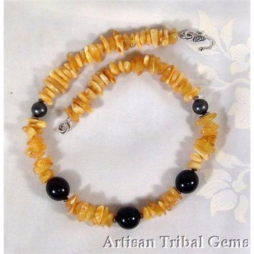 Vera has chosen rich hues of genuine butter Baltic amber and 17mm cherry amber complimented 11mm black pearl bead accent and of course the finest of sterling. The necklace is finished to perfection with a 22mm sterling s hook closure. For those not familiar to metric 25mm=1".