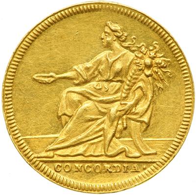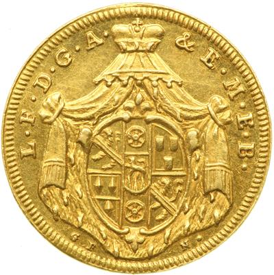 Mainz. Ducat, ND (1696). Fr-1666; KM-220. 3.50 grams. 20.76 mm. Mintmaster initials, GFN (Geog Friedrich Nurnberger, in Nuremberg). Lothar Franc, 1695-1729. On the Peace of Ryswick. Concordia seated with corucopia in left arm, crown or wreath of victory in right extened arm. Under figure "CONCORDIA" Reverse Arms under canopy. Leg: L.F.D.G.A - &E.M.E.B. NGC graded MS-61.
