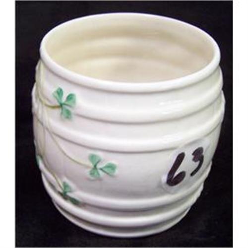 <!-- BEGIN: ICOLLECTOR - EBAY LOT HTML CODE --><style type='text/css'> #icoll_images_thumbnails, #icoll_images_mainimage, #icoll_otherlots { display: none; } div { font-family: arial, verdana, helvetica; } img { border: none; } .icoll_heading_title { background-color: #EFEFFF; color: #000; font-family: arial, verdana, helvetica; font-size: 12pt; font-style: normal; font-weight: bold; } </style><style type='text/css'>@import url(http://www.icollector.com/css/ebay/ebaylot_20070703.css);</style><script language='javascript' type='text/javascript'>function icollfunc_getelement(element_id) { var tmpelement = null; if(document.getElementById) tmpelement = document.getElementById(element_id); if(tmpelement == null) tmpelement = document[element_id]; return tmpelement; }var icollvar_mainpic = null; function icollfunc_initimages() { icollfunc_getelement('mainPicture').style.display = 'none'; icollvar_mainpic = icollfunc_getelement('icoll_images_mainimage'); var body_onload = document.body.attributes['onload']; document.body.setAttribute('onload', (body_onload ? body_onload.nodeValue : '') + 'icollfunc_fixoperaimgbug();'); }function icollfunc_changeimage(imgurl) { if(icollvar_mainpic != null) icollvar_mainpic.src = imgurl; }function icollfunc_fixoperaimgbug() { if(window.opera) { var imgobjs = icollfunc_getelement('icoll_images_thumbnails').getElementsByTagName('img'); for(var i=0; i<imgobjs.length; i++) { var w = imgobjs[i].clientWidth; if(w > 0) imgobjs[i].style.width = w + 'px'; } } }</script><script language='javascript' type='text/javascript'> var useragent = escape(navigator.userAgent); var appname = escape(navigator.appName); var dateobj = new Date(); var datetime = escape(dateobj.getFullYear()+'-'+(dateobj.getMonth()+1)+'-'+dateobj.getDate()+' '+dateobj.getHours()+':'+dateobj.getMinutes()); var referrer = ''; if(document.referrer && document.referrer != null) referrer = escape(document.referrer); new Image().src = 'http://www.icollector.com/stats/ebaylot.ashx?id=7619747&ua='+useragent+'&an='+appname+'&dt='+datetime+'&tz='+dateobj.getTimezoneOffset()+'&re='+referrer;</script><div id='icoll_images'><div id='icoll_images_prev'><a href='http://cgi.liveauctions.ebay.com/ws/eBayISAPI.dll?ViewItem&item=250201153186'><img src='http://photos.icollector.com/photos/harrisonauctions/5054/5054_0062_1_md.jpg' alt='' /><img src='http://icollector.com/graphics/ebay_leftarrow.gif' alt='' class='arrow' /></a><div id='icoll_images_prev_info'>Prev Lot</div></div><div id='icoll_images_next'><a href='http://cgi.liveauctions.ebay.com/ws/eBayISAPI.dll?ViewItem&item=250201153193'><img src='http://photos.icollector.com/photos/harrisonauctions/5054/5054_0064_1_md.jpg' alt='' /><img src='http://icollector.com/graphics/ebay_rightarrow.gif' alt='' class='arrow' /></a><div id='icoll_images_next_info'>Next Lot</div></div><div id='icoll_images_thumbnails'><a href='http://photos.icollector.com/photos/harrisonauctions/5054/5054_0063_1_lg.jpg' target='_blank' onmouseover="icollfunc_changeimage('http://photos.icollector.com/photos/harrisonauctions/5054/5054_0063_1_md.jpg');"><img src='http://photos.icollector.com/photos/harrisonauctions/5054/5054_0063_1_th.jpg' alt='' /></a><div id='icoll_images_thumbnails_info'>Hover thumbnail to view large image below. Click thumbnail to view full image in new window.</div></div><div id='icoll_images_mainimage_container'><img id='icoll_images_mainimage' alt='' src='http://photos.icollector.com/photos/harrisonauctions/5054/5054_0063_1_md.jpg'></div></div><script language='javascript' type='text/javascript'>icollfunc_initimages();</script><div id='icoll_description'>BELEEK green table mint barrel<BR></div><div id='icoll_notices'><div class='icoll_heading_left'></div><div class='icoll_heading'><div class='icoll_heading_title'>Notices</div></div><div class='icoll_heading_right'></div><div id='icoll_notices_info'><a href="http://www.icollector.com/mediapopup.aspx?asid=13410">Link to Audio</a></div></div><div class='icoll_section'><div class='icoll_section_left'><div id='icoll_premium'><div class='icoll_heading_left'></div><div class='icoll_heading'><div class='icoll_heading_title'>Buyer's Premiums</div></div><div class='icoll_heading_right'></div><div id='icoll_premium_info'><ul><li><span id="icoll_premium_info_rate">17%</span> <span id="icoll_premium_info_range">( 0.00 ~ 9999999.00 )</span></li></ul></div></div></div><div class='icoll_section_right'><div id='icoll_taxes'><div class='icoll_heading_left'></div><div class='icoll_heading'><div class='icoll_heading_title'>Taxes</div></div><div class='icoll_heading_right'></div><div id='icoll_taxes_taxrates'><ul><li>FST: 6%</li></ul></div><div id='icoll_taxes_info'></div></div></div></div><div class='icoll_section'><div class='icoll_section_left'><div id='icoll_contactahouse'><div class='icoll_heading_left'></div><div class='icoll_heading'><div class='icoll_heading_title'>Auction House Info</div></div><div class='icoll_heading_right'></div><div id='icoll_contactahouse_info'><img src='http://www.icollector.com/graphics/logos/harrisonauctions_large.gif' alt=''>Harrison Auctions Inc