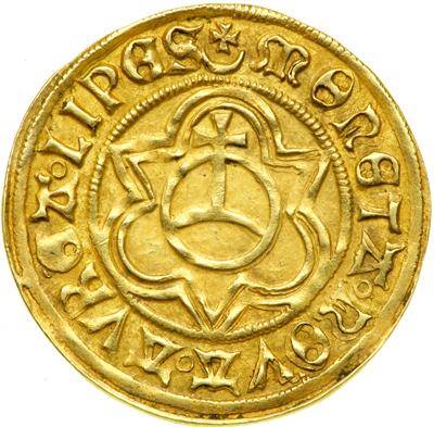 Saxony divided in 1485 into the Ernestine and Albertine lines. The two grandsons of Friedrich, Ernst and Albert headed the two divisions. The Ernestine line lasted only until 1547, and all its gold coins are rare.