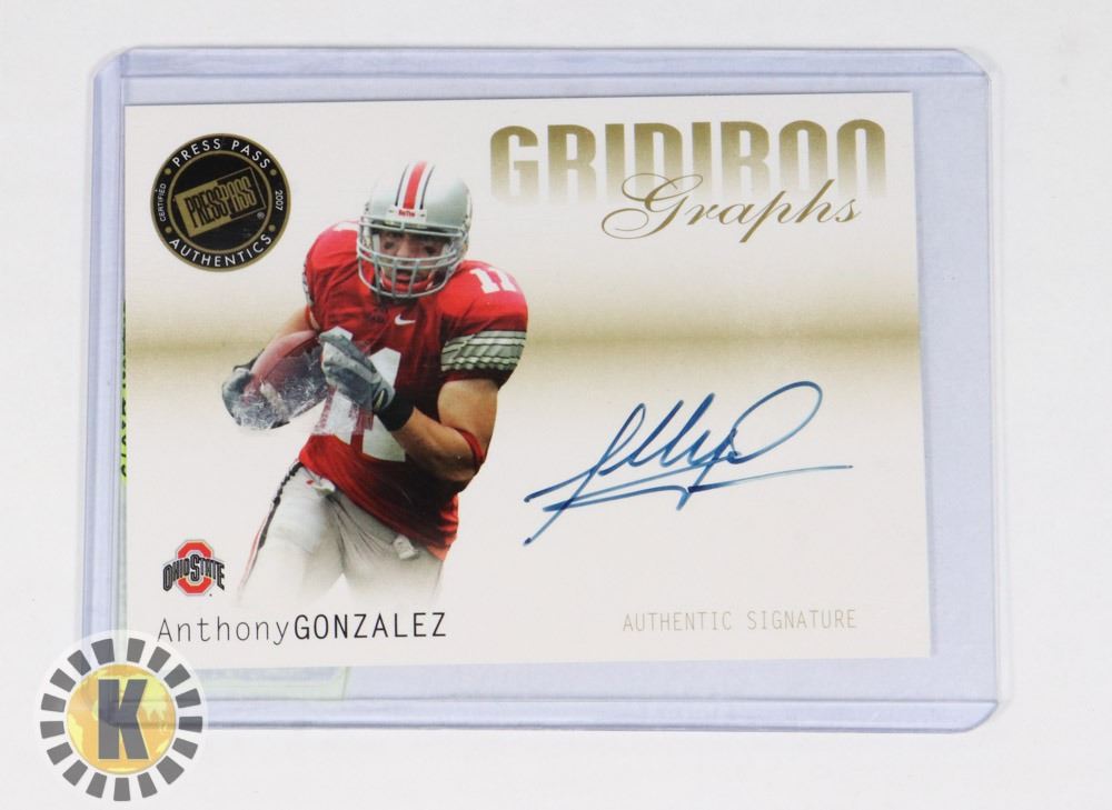 ANTHONY GONZALEZ AUTOGRAPHED 2007 PRESS PASS SE GRIDIRON GRAPHS GOLD #GG-AG SPORTS TRADING CARD***ITEM(S) LOCATED IN LETHBRIDGE ALBERTA