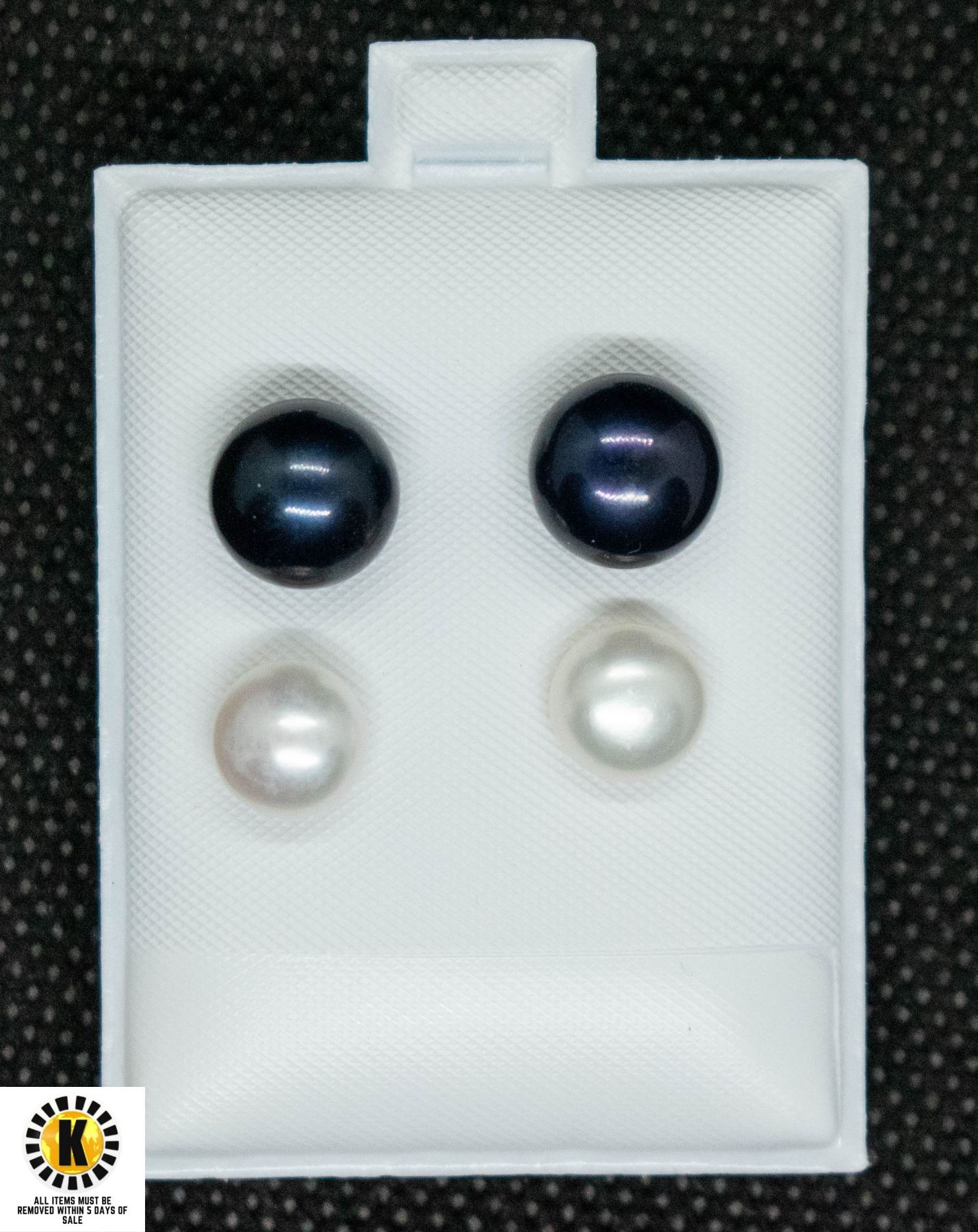 .925 STERLING SILVER/ 2PAIRS/7-8MM /9-9.5MM /BLACK/WHITE