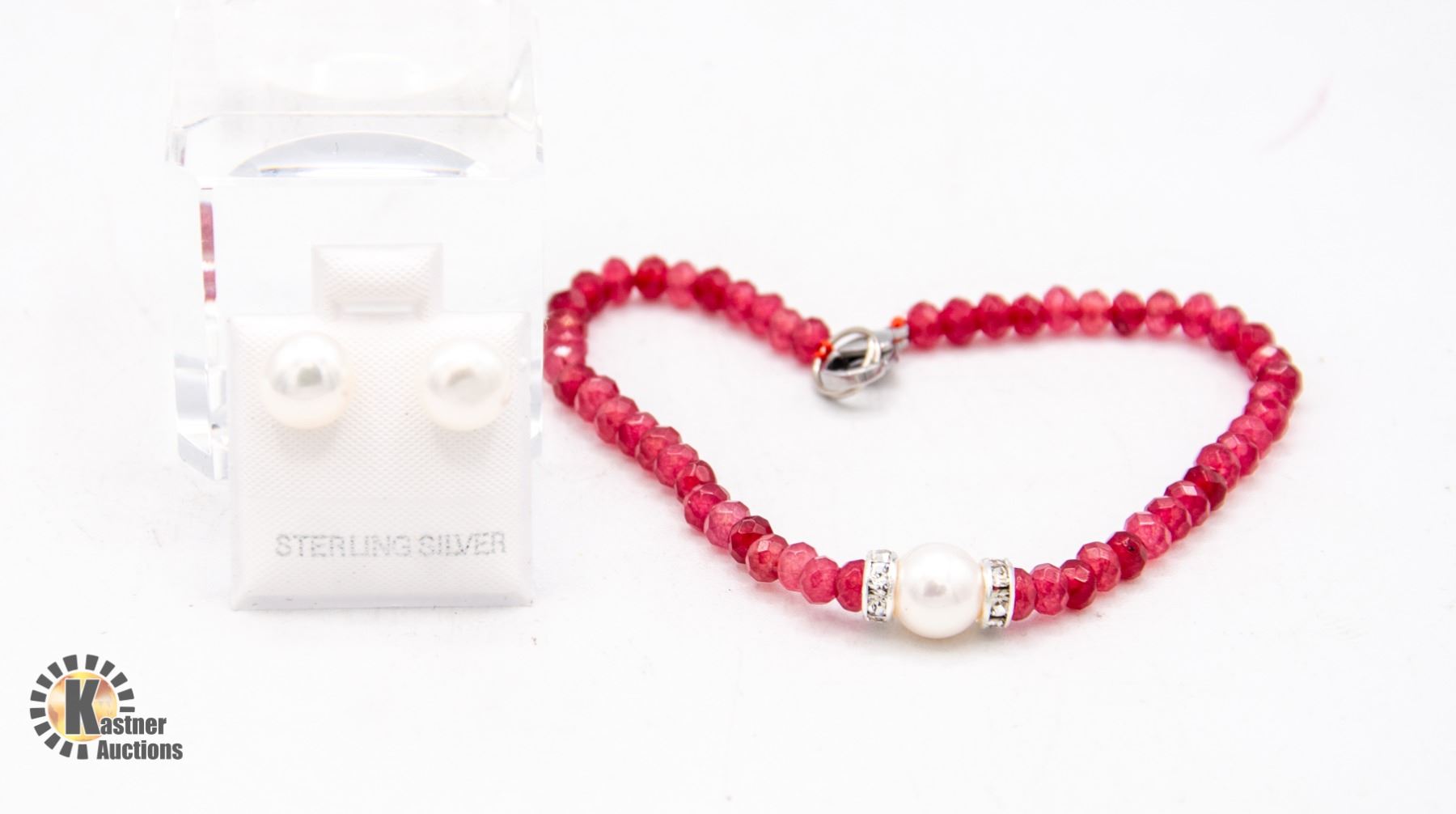 #09- NATURAL RED JADE ,PEARL ,BRACELET & EARRINGS