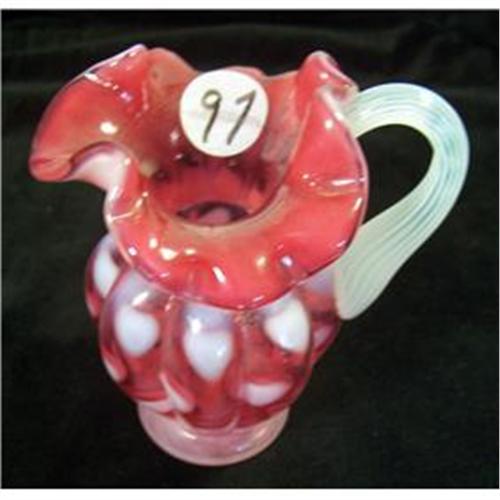 </div></div></div></div></div><div id='icoll_shipping'><div class='icoll_heading_left'></div><div class='icoll_heading'><div class='icoll_heading_title'>Shipping Info</div></div><div class='icoll_heading_right'></div><div id='icoll_shipping_info'>Freight will be added for actual charges plus $2.00 for shipping supplies. If you would like to have your packages insured please E-mail us.</div><div id='icoll_shipping_option'>Shipping To: Will ship to United States and the following regions :</div><div id='icoll_shipping_regions'>Canada, Europe</div></div><div id='icoll_payment'><div class='icoll_heading_left'></div><div class='icoll_heading'><div class='icoll_heading_title'>Payment Info</div></div><div class='icoll_heading_right'></div><div id='icoll_payment_info'></div><div id='icoll_payment_methods'>Money order/Cashier checks, Visa/Mastercard, Discover, PayPal</div></div><div id='icoll_otherlots'><div class='icoll_heading_left'></div><div class='icoll_heading'><div class='icoll_heading_title'>Other Lots You May Be Interested In...</div></div><div class='icoll_heading_right'></div><div id='icoll_otherlots_thumbnails'><a href="http://cgi.liveauctions.ebay.com/ws/eBayISAPI.dll?ViewItem&item=250201153708" target="_blank"><img alt="" src="http://photos.icollector.com/photos/harrisonauctions/5054/5054_0156_1_th.jpg"><span>Fenton 10" lotus mist Burmese basket s/n</span></a><a href="http://cgi.liveauctions.ebay.com/ws/eBayISAPI.dll?ViewItem&item=250201153707" target="_blank"><img alt="" src="http://photos.icollector.com/photos/harrisonauctions/5054/5054_0155_1_th.jpg"><span>6" Fenton cranberry hobnail dish</span></a><a href="http://cgi.liveauctions.ebay.com/ws/eBayISAPI.dll?ViewItem&item=250201153701" target="_blank"><img alt="" src="http://photos.icollector.com/photos/harrisonauctions/5054/5054_0154_1_th.jpg"><span>Fenton Mary Gregory cranberry tumble up </span></a><a href="http://cgi.liveauctions.ebay.com/ws/eBayISAPI.dll?ViewItem&item=250201153695" target="_blank"><img alt="" src="http://photos.icollector.com/photos/harrisonauctions/5054/5054_0153_1_th.jpg"><span>Fenton cranberry daisy and fern vase </span></a><a href="http://cgi.liveauctions.ebay.com/ws/eBayISAPI.dll?ViewItem&item=250201153692" target="_blank"><img alt="" src="http://photos.icollector.com/photos/harrisonauctions/5054/5054_0152_1_th.jpg"><span>Fenton cranberry opalescent hobnail vase</span></a><a href="http://cgi.liveauctions.ebay.com/ws/eBayISAPI.dll?ViewItem&item=250201152693" target="_blank"><img alt="" src="http://photos.icollector.com/photos/harrisonauctions/5054/5054_0002_1_th.jpg"><span>Ironstone Extra Quality Milk Pitcher</span></a></div></div><div id='icoll_poweredby'> <a href='http://www.icollector.com/services/welcome.aspx'> <img src='http://www.icollector.com/load_img.aspx?auctionID=5054&itemID=250201153428' alt='iCollector.com' /> </a> </div><!-- END: ICOLLECTOR - EBAY LOT HTML CODE -->