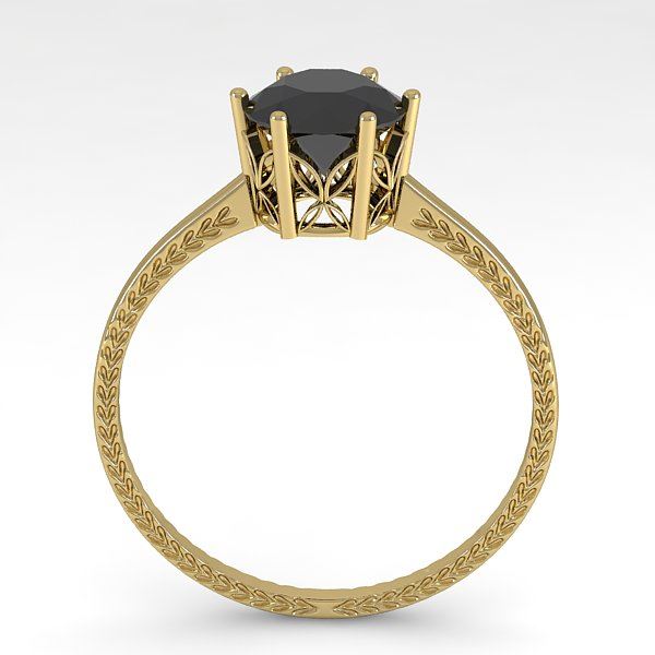 REF-53X6T -35902 ---- 1.0 CTW Black Diamond Solitaire Engagement Ring 18K Yellow Gold ---- Luxury Designer Brand Ring Appraised at $3,250 Certificate Number US35902 18k Yellow gold, Ring Size is 7, Ring measuring approx. Uniform, weighing in total approx. 3 grams. Made in the USA and is stamped 18k, Main stone 1 carat total weight containing 1 pieces of Black Opaque color with VS quality Round shape cut Diamond , Stone #2 carat total weight containing pieces of color with quality shape cut