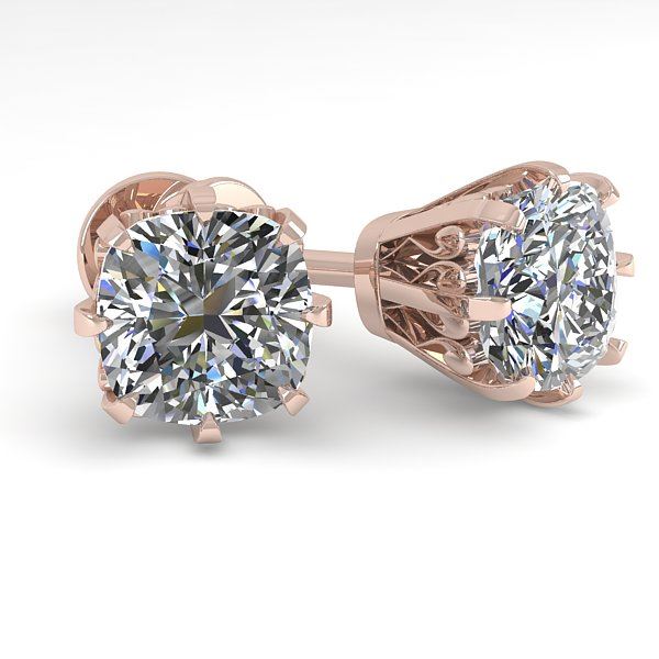 REF-178Y2K -35675 ---- 1.0 CTW VS/SI Cushion Cut Diamond Stud Solitaire Earrings 18K Rose Gold ---- Luxury Designer Brand Earring Appraised at $7,850 Certificate Number US35675 18k Rose gold, Earring Size is Larger, Earring measuring approx. Uniform, weighing in total approx. 3 grams. Made in the USA and is stamped 18k, Main stone 1 carat total weight containing 2 pieces of H-J color with VS/SI quality CUSHION shape cut Diamond , Stone #2 carat total weight containing pieces of color with quality shape cut