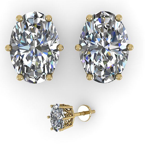 REF-178A2X -35827 ---- 1.0 CTW VS/SI Oval Diamond Stud Solitaire Earrings 18K Yellow Gold ---- Luxury Designer Brand Earring Appraised at $8,800 Certificate Number US35827 18k Yellow gold, Earring Size is Larger, Earring measuring approx. Uniform, weighing in total approx. 2 grams. Made in the USA and is stamped 18k, Main stone 1 carat total weight containing 2 pieces of H-J color with VS/SI quality Oval shape cut Diamond , Stone #2 carat total weight containing pieces of color with quality shape cut