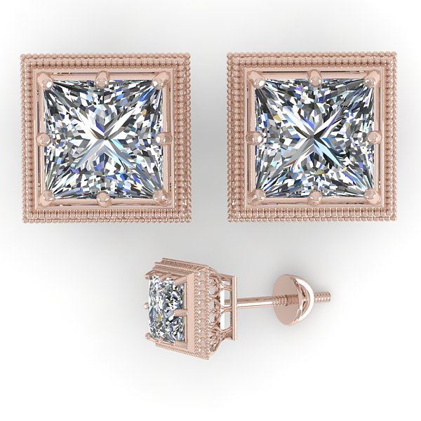 1.0 CTW VS/SI Princess Diamond Stud Solitaire Earrings 18K Rose Gold ---- Luxury Designer Brand Earring Appraised Retail Price at $10,300 ---- SKU Number US35960 18k Rose gold Earring Size is Larger, Earring measuring approx. Uniform, weighing in total approx. 4 grams. Made in the USA and is stamped 18k, Main stone 1.00 carat total weight containing 2 pieces of H-J color with VS/SI quality Princess shape cut Diamond , Stone #2 carat total weight containing pieces of color with quality shape cut
