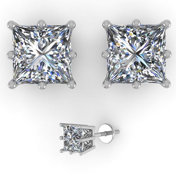 REF-178M2H -35829 ---- 1.0 CTW VS/SI Princess Diamond Stud Solitaire Earrings 18K White Gold ---- Luxury Designer Brand Earring Appraised at $9,800 Certificate Number US35829 18k White gold, Earring Size is Larger, Earring measuring approx. Uniform, weighing in total approx. 2 grams. Made in the USA and is stamped 18k, Main stone 1 carat total weight containing 2 pieces of H-J color with VS/SI quality Princess shape cut Diamond , Stone #2 carat total weight containing pieces of color with quality shape cut