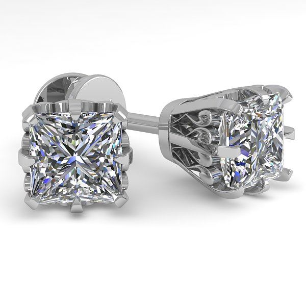 REF-178W2F -35673 ---- 1.0 CTW VS/SI Princess Diamond Stud Solitaire Earrings 18K White Gold ---- Luxury Designer Brand Earring Appraised at $9,800 Certificate Number US35673 18k White gold, Earring Size is Larger, Earring measuring approx. Uniform, weighing in total approx. 3 grams. Made in the USA and is stamped 18k, Main stone 1 carat total weight containing 2 pieces of H-J color with VS/SI quality Princess shape cut Diamond , Stone #2 carat total weight containing pieces of color with quality shape cut