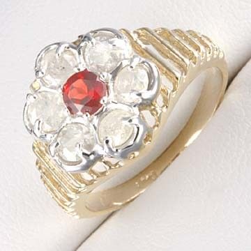 1.0 Ctw. Brilliant Round Cut Diamonds - Round Cut Lab Ruby Accent Stone - 10ky Gold