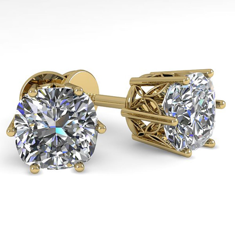 REF-147A2N - SKU: 35833 ---- 1.0 ctw VS/SI Cushion Cut Diamond Stud Earrings 18k Yellow Gold
