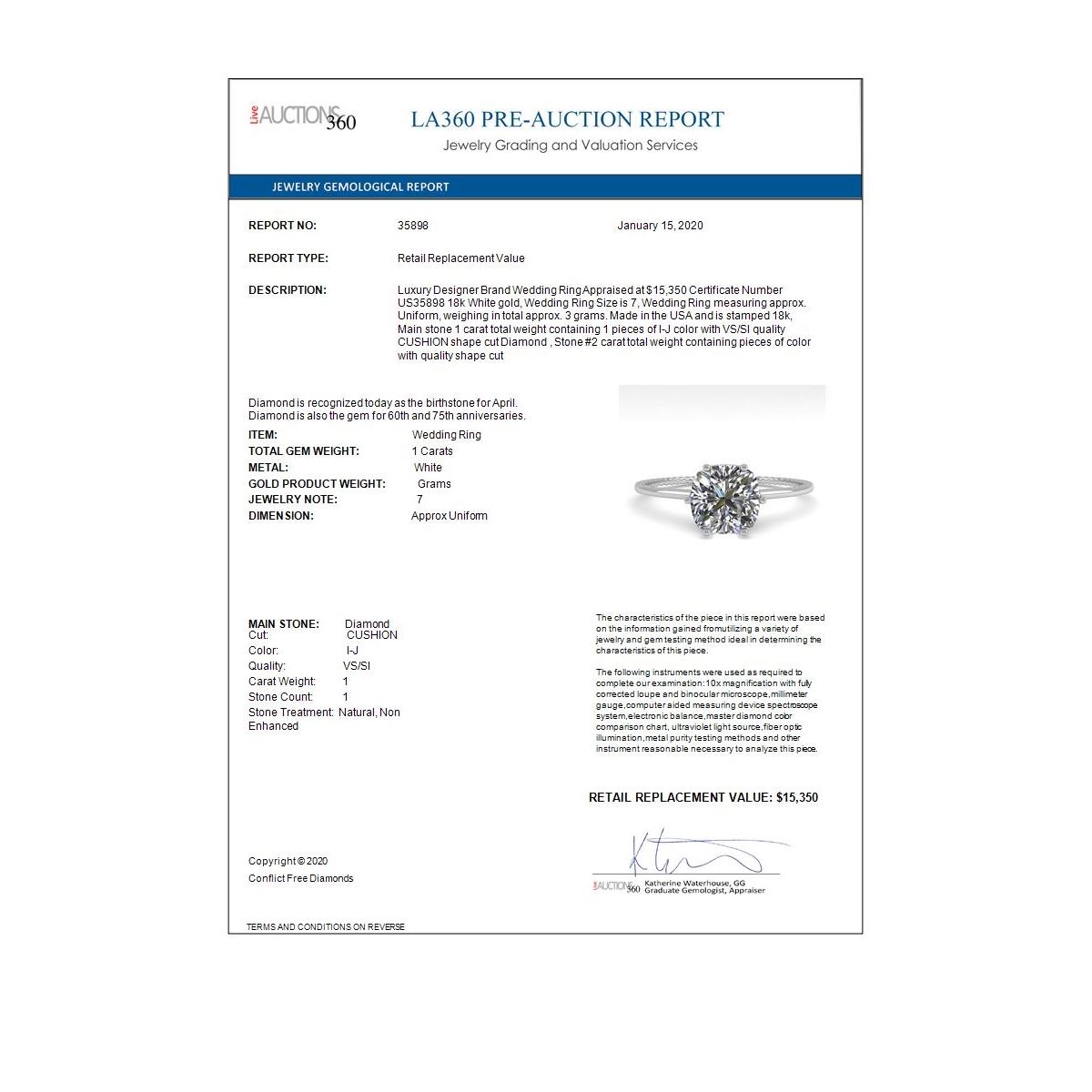 REF-287K4Y - SKU: 35898 ---- 1.0 ctw VS/SI Cushion Diamond Engagment Ring 18k White Gold