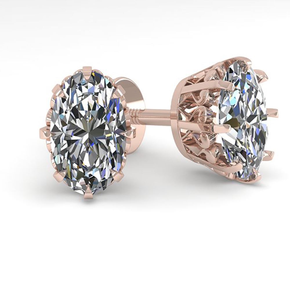 REF-147N2F - SKU: 35669 ---- 1.0 ctw VS/SI Oval Cut Diamond Stud Solitaire Earrings 18k Rose Gold