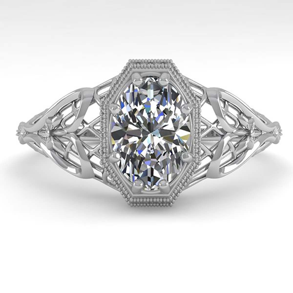 REF-284M3F - SKU:29832 ---- 1.0 ctw VS/SI Oval Diamond Art Deco Ring 14K White Gold