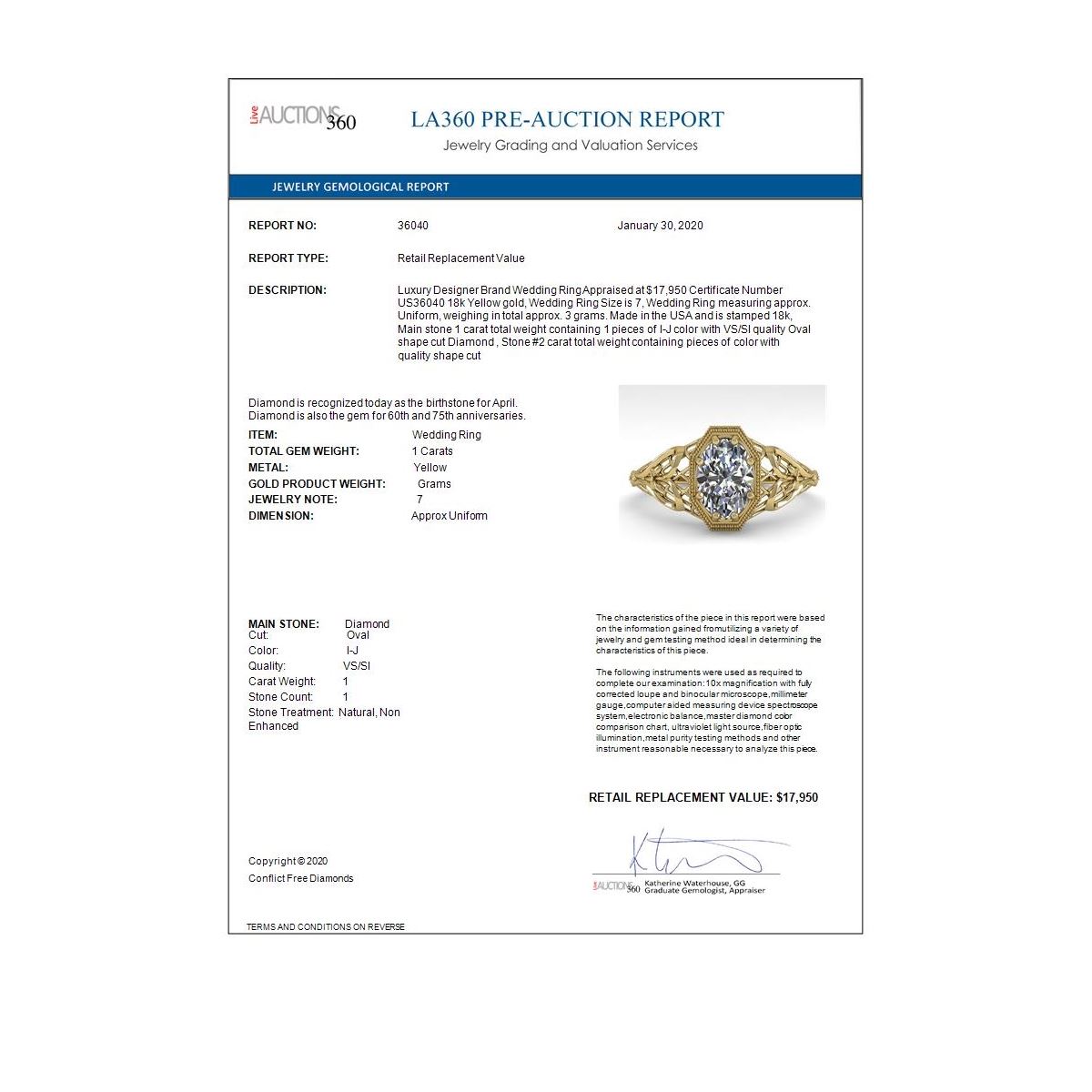 REF-299H4R - SKU: 36040 ---- 1.0 ctw VS/SI Oval Diamond Engagment Ring Art Deco 18k Yellow Gold
