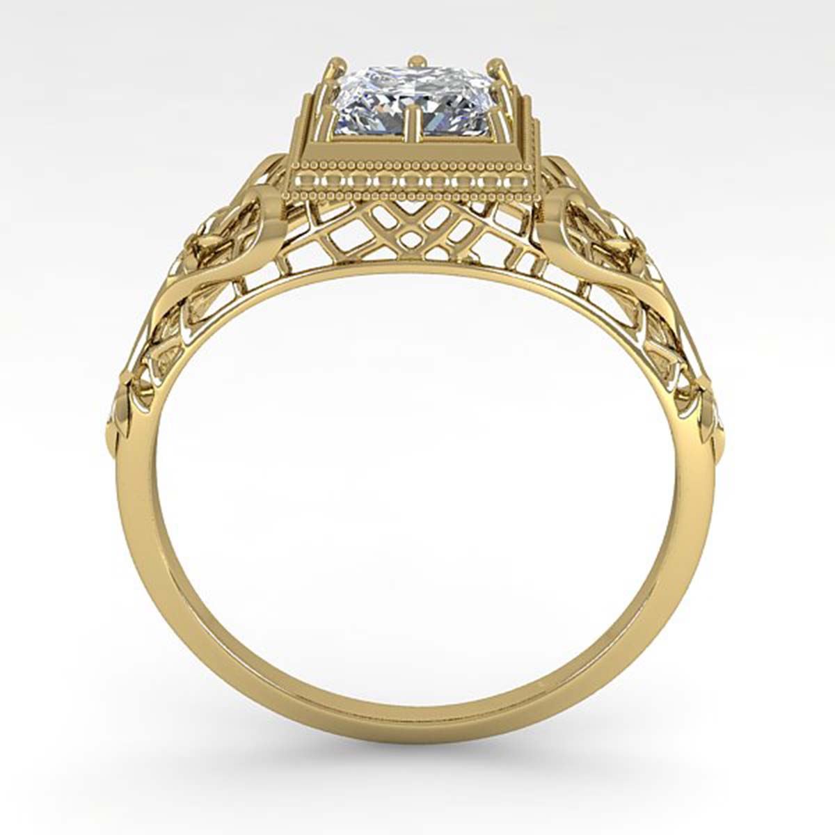 REF-329R3K - SKU:29836 ---- 1.0 ctw VS/SI Princess Diamond Solitaire Art Deco Ring 14K Yellow Gold