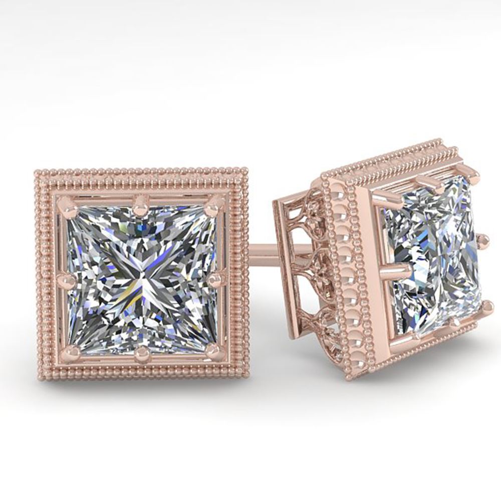 REF-170F9M - SKU: 35960 ---- 1.0 ctw VS/SI Princess Diamond Stud Earrings Art Deco 18k Rose Gold