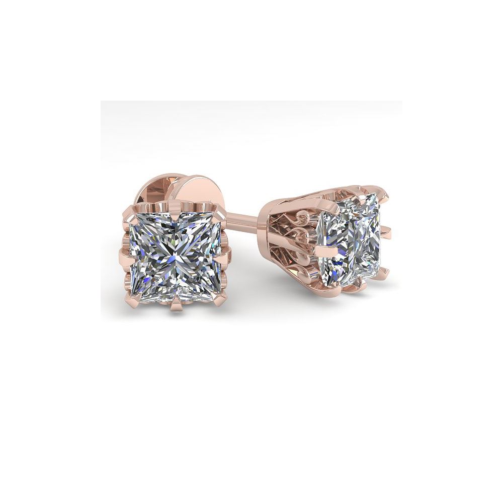 1.0 ctw VS/SI Princess Diamond Stud Solitaire Earrings 18K Rose Gold