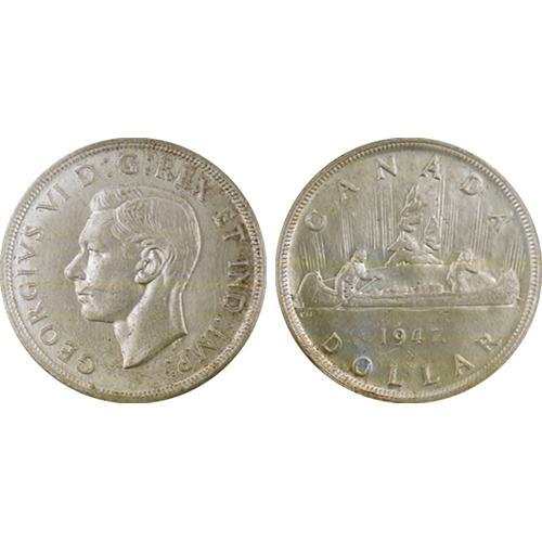$1.00 1947 MS60 ICCS "Doubled HP"<Br>Maple Leaf. Pale toning, mostly in obverse legends. "Doubled HP"