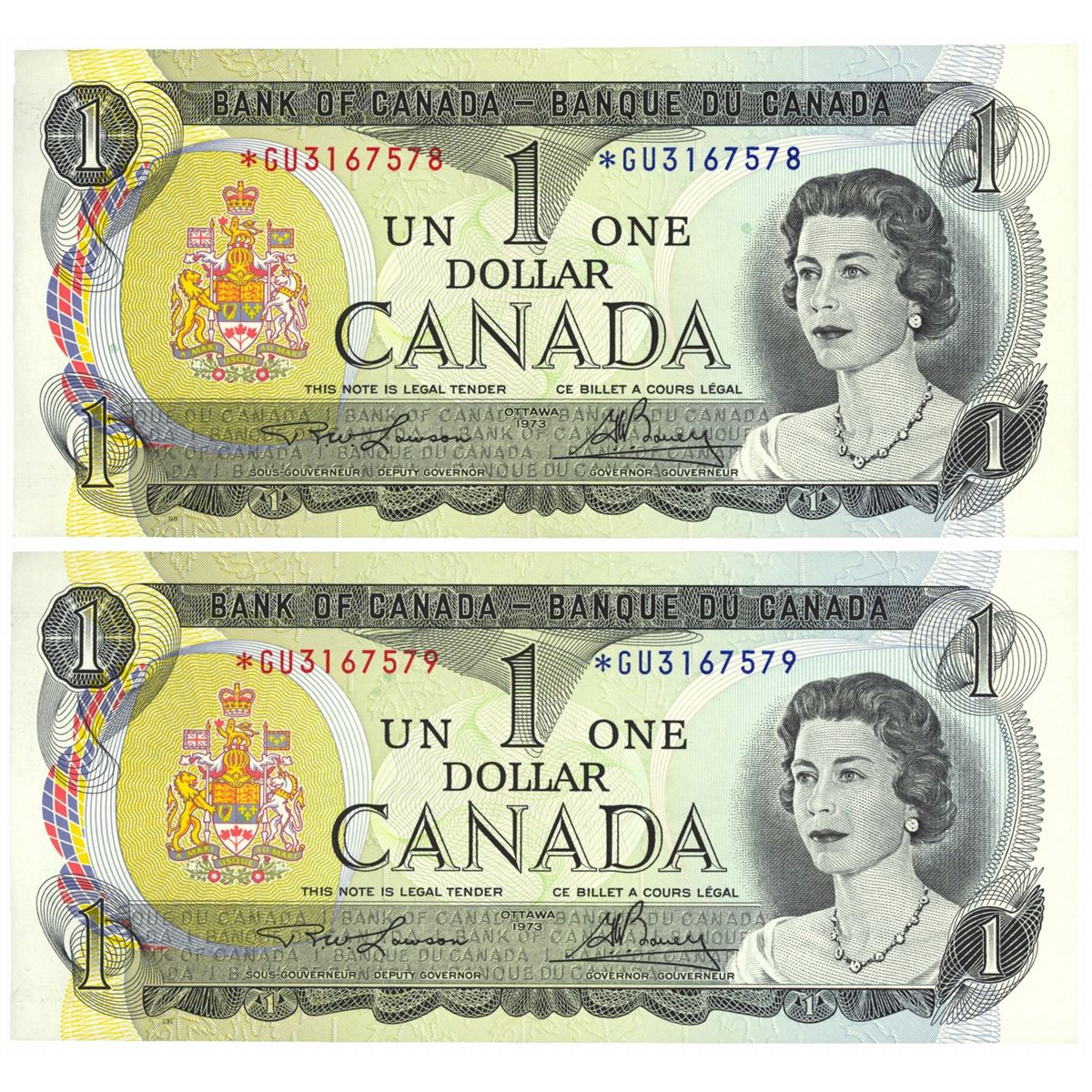 $1.00. 1973. BC-46aA. Lawson-Bouey. No.*GU3167578-9. Extremely Fine-40. Consecutive serial number pair. Lot of two (2) pcs.