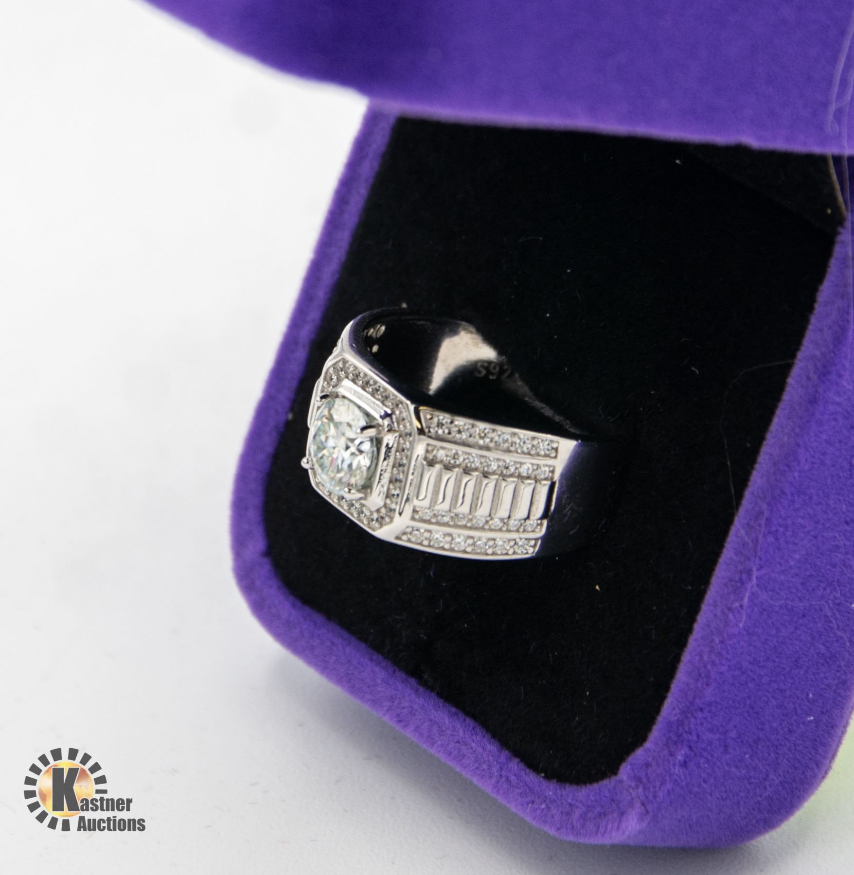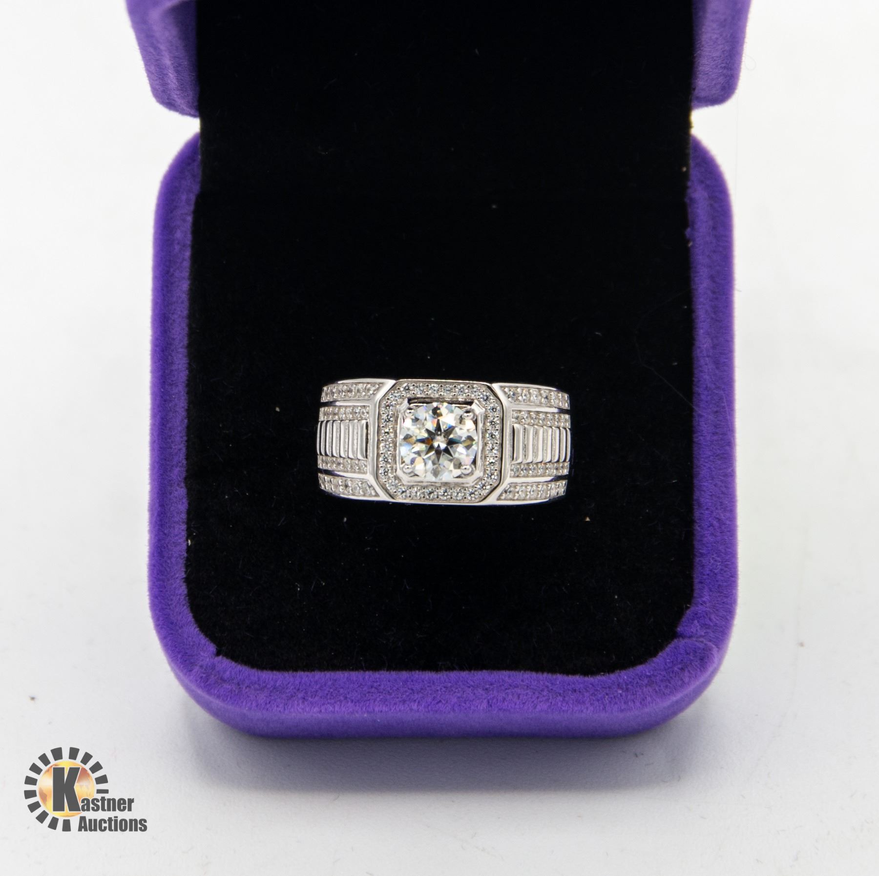 IN CENTER WITH 84 CUBIC ZIRCONIUM SET IN HALO AND DOWN SHANK SET IN STERLING SILVER RING SIZE 9.5 **ALL ITEMS MUST BE REMOVED BY 5PM SATURDAY, MARCH 2ND 2024. ALL REMAINING ITEMS WILL BE SUBJECT TO A $6.00 PER DAY STORAGE CHARGE. ANY ITEMS REMAINING AFTER MONDAY, MARCH 18TH, 2023 WILL BE CONSIDERED FORFEITED. NO REFUNDS WILL BE ISSUED FOR FORFEITED ITEMS. TO SCHEDULE A PICK UP APPOINTMENT CLICK HERE