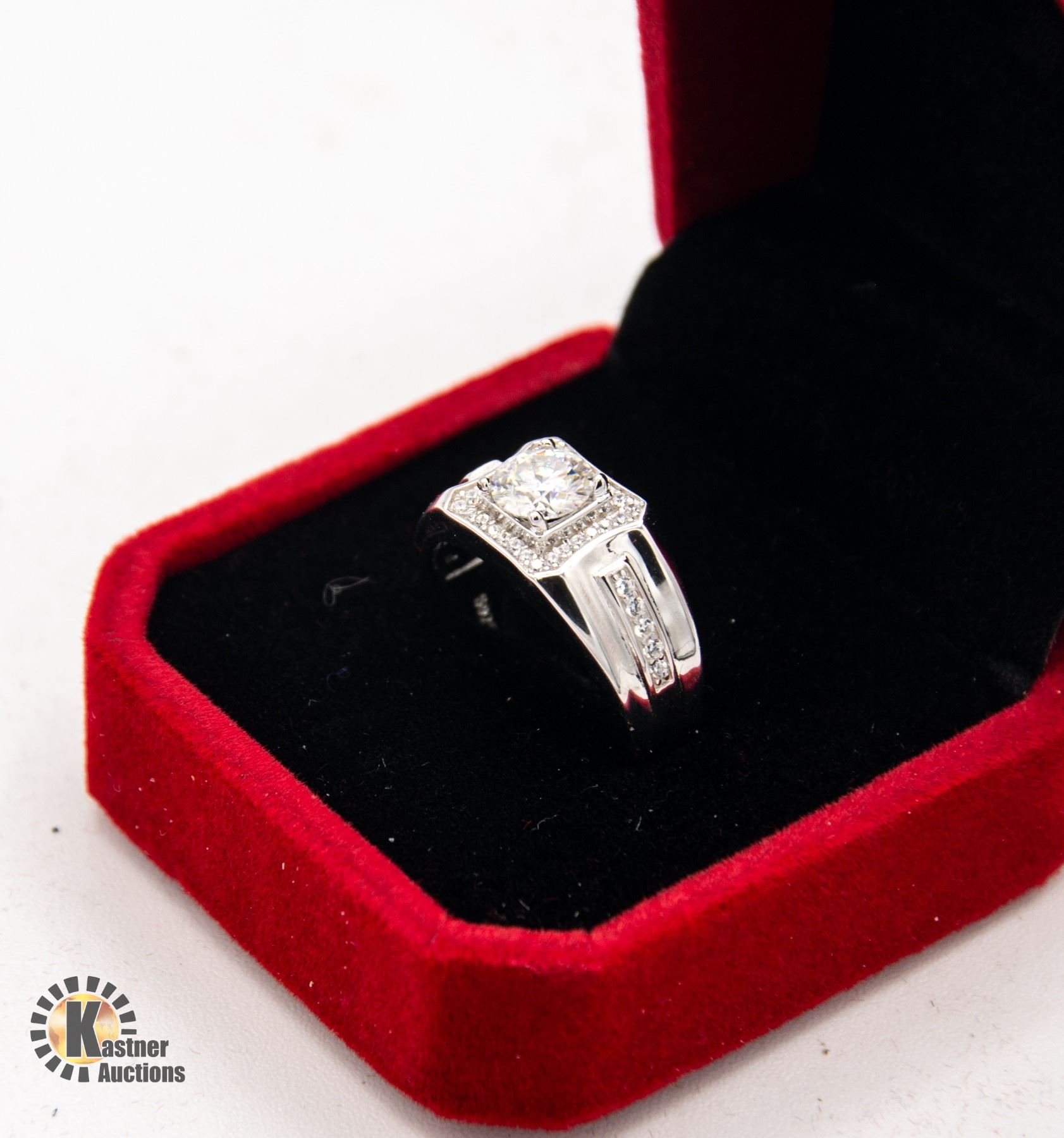 SURROUNDED BY SQUARE SHAPED HALO ALONG WITH 5 PER SHANK ARE 38 ROUND BRILLIANT CUT CUBIC ZIRCONIA 0.15 CT TW RING SIZE ADJUSTABLE RETAIL VALUE $825.00 **ALL ITEMS MUST BE REMOVED BY 5PM SATURDAY, MAY 4TH 2024. ALL REMAINING ITEMS WILL BE SUBJECT TO A $6.00 PER DAY STORAGE CHARGE. ANY ITEMS REMAINING AFTER MONDAY, MAY 20TH 2024 WILL BE CONSIDERED FORFEITED. NO REFUNDS WILL BE ISSUED FOR FORFEITED ITEMS. TO SCHEDULE A PICK UP APPOINTMENT CLICK HERE