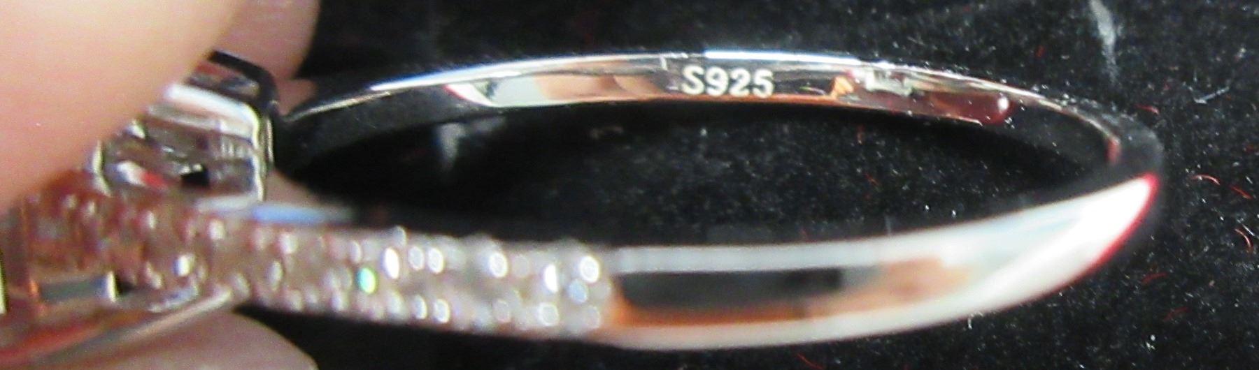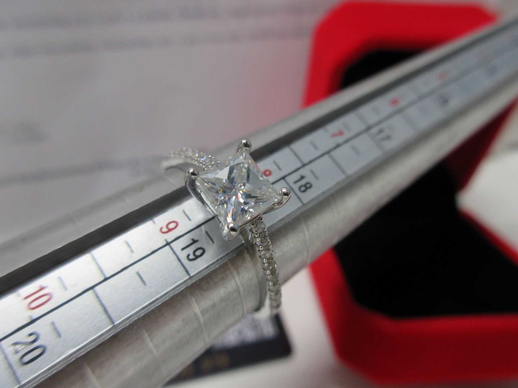 1.00 CT GRA CERTIFIED PRINCESS CUT MOISSANITE STONE VVS D COLOR WITH 18 ROUND BRILLIANT CUT CUBIC ZIRCONIA SET IN SHANK SET IN 925 SILVER RING SIZE 8.5 RETAIL VALUE $1,040.00