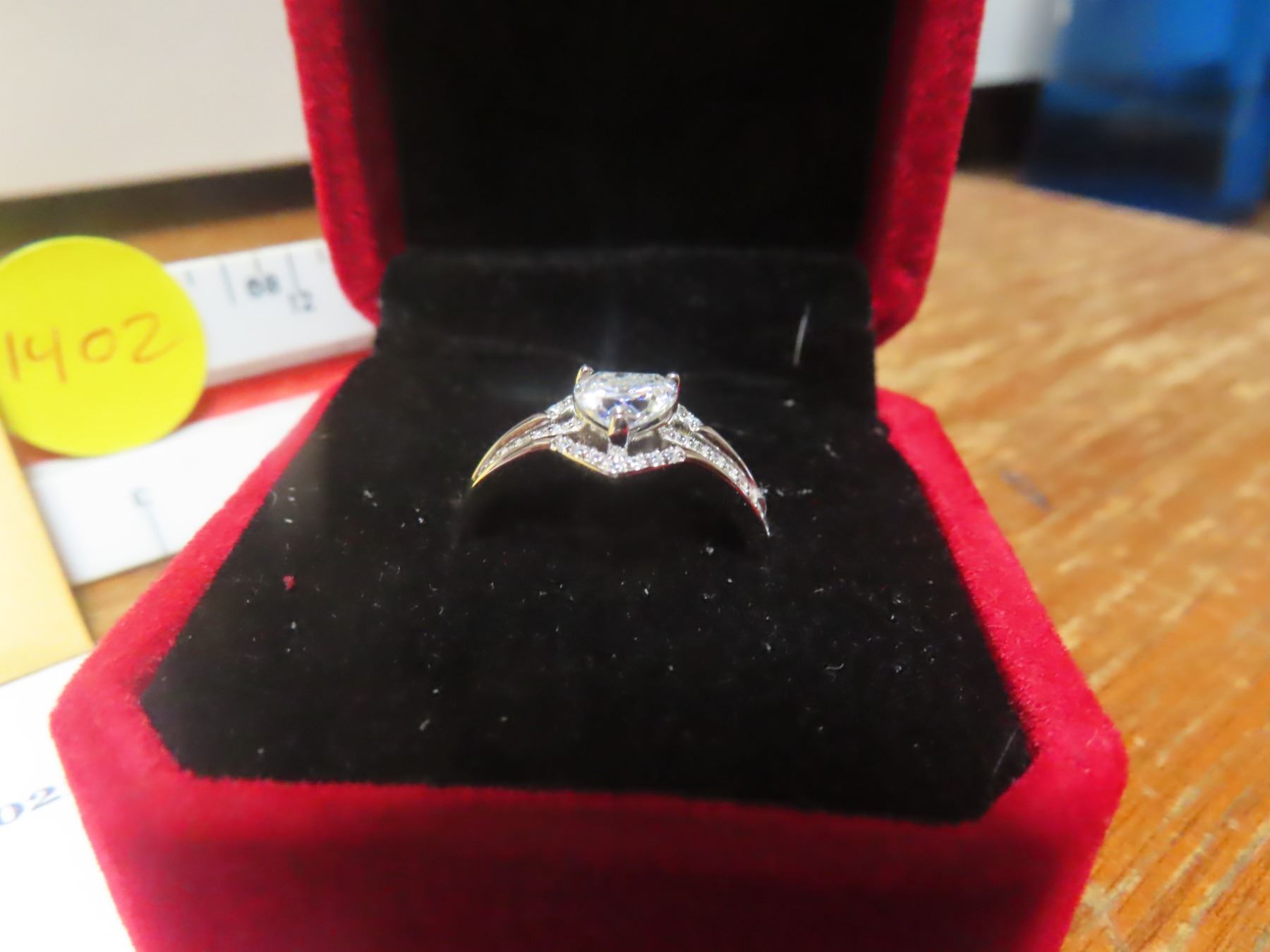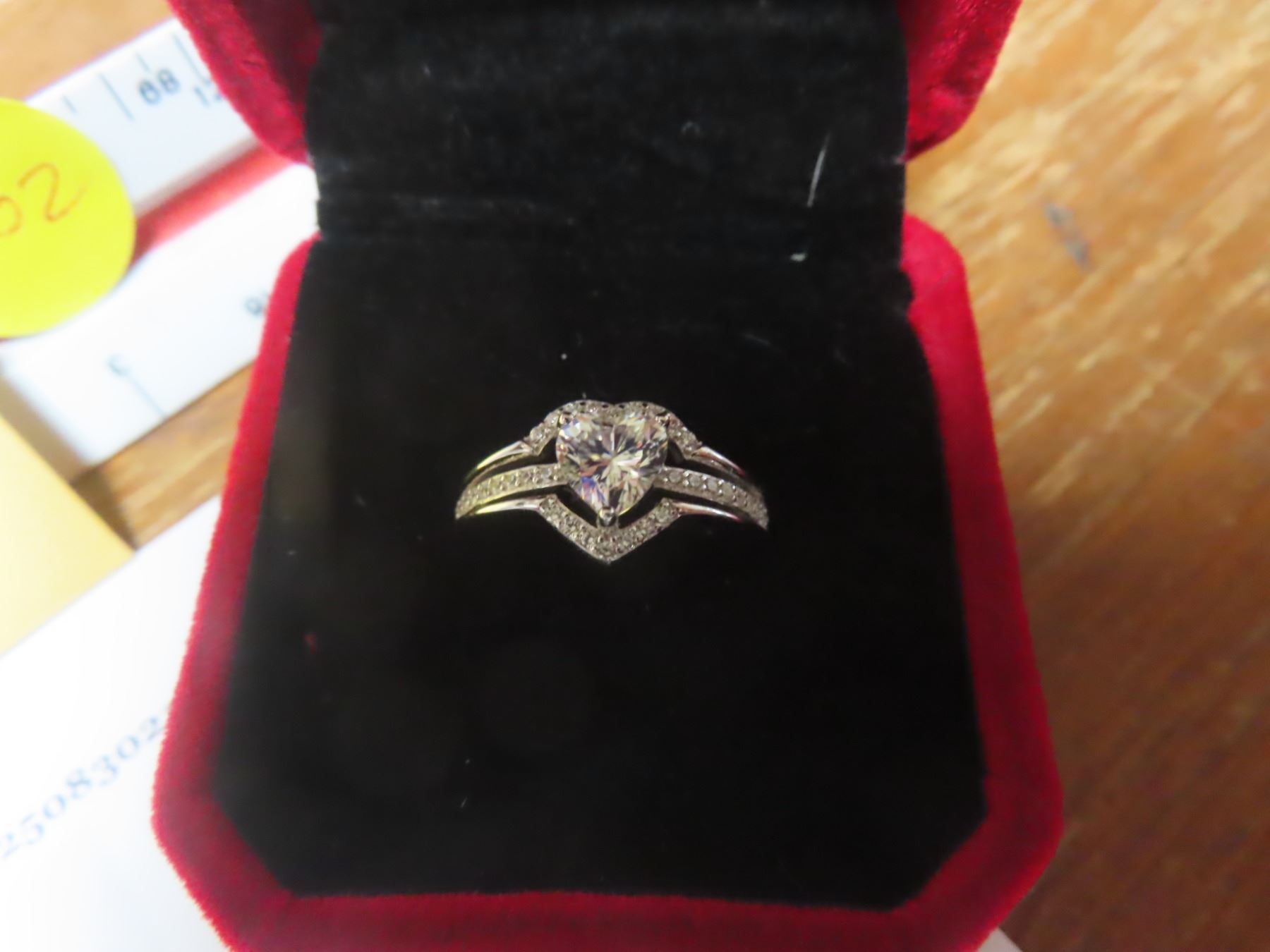 [SIZE 7] - HEART CUT MOISSANITE STONE VVS D COLOR WITH 33 ROUND BRILLIANT CUT CUBIC ZIRCONIA SET IN SHANKS SET IN 925 SILVER RING RETAIL VALUE $1,045.00