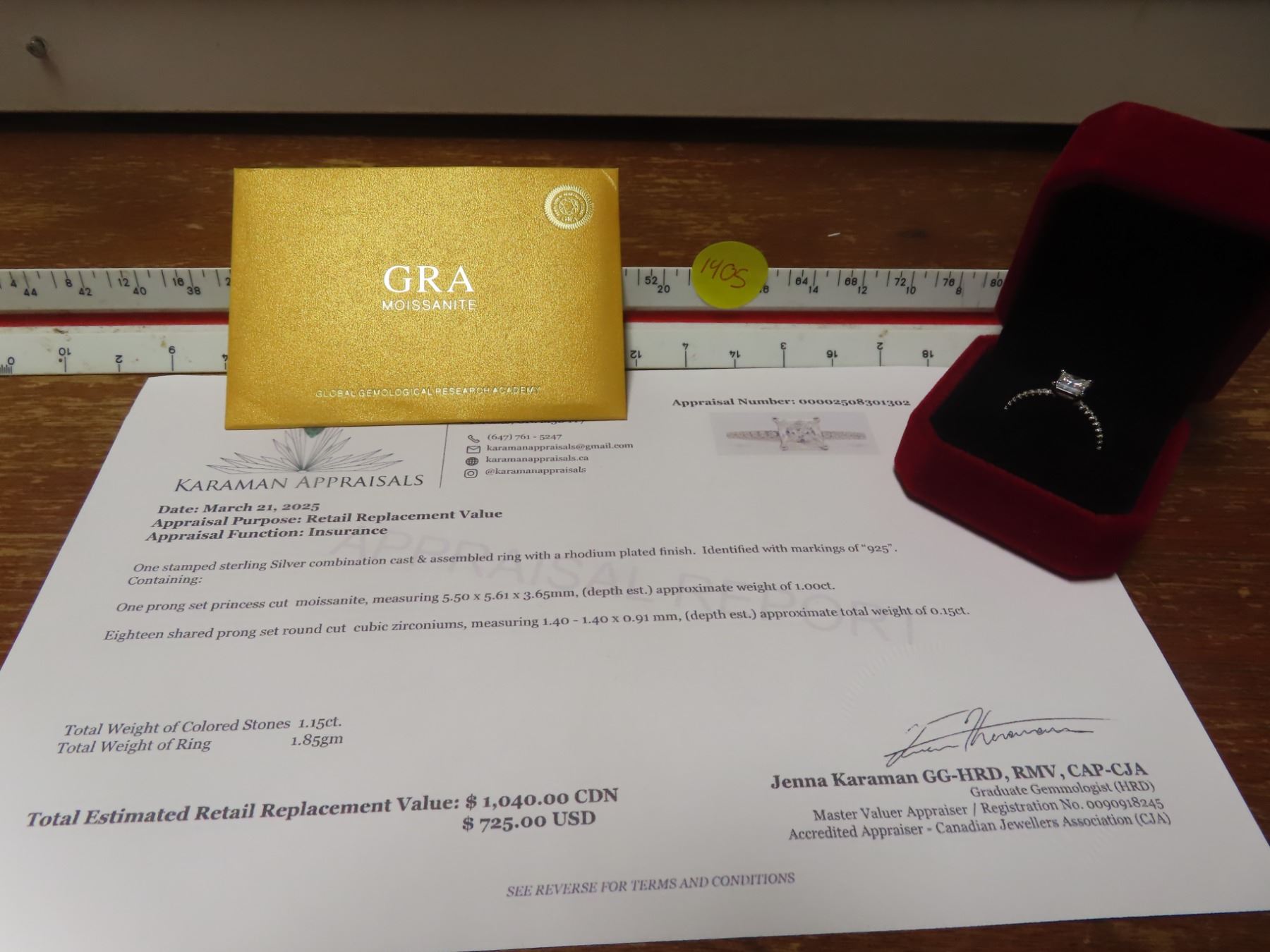[ SIZE 7] - PRINCESS CUT MOISSANITE STONE VVS D COLOR WITH 18 ROUND BRILLIANT CUT CUBIC ZIRCONIA SET IN SHANKS SET IN 925 SILVER RING RETAIL VALUE $1,040.00