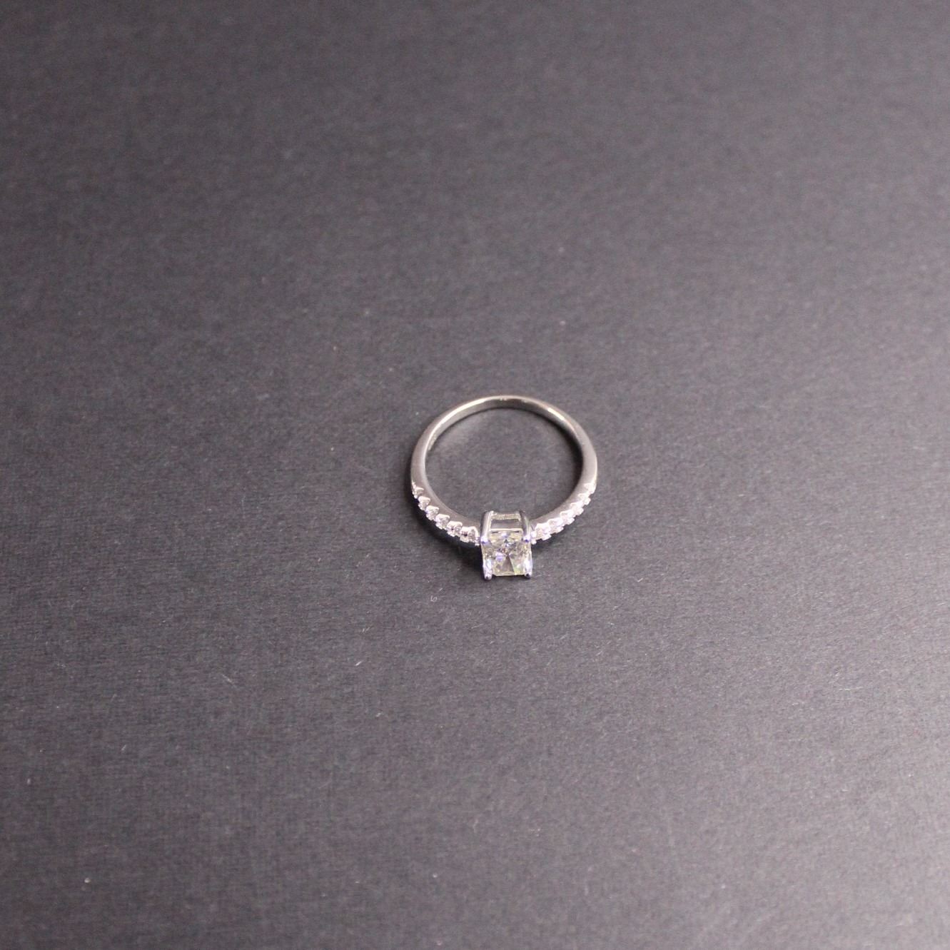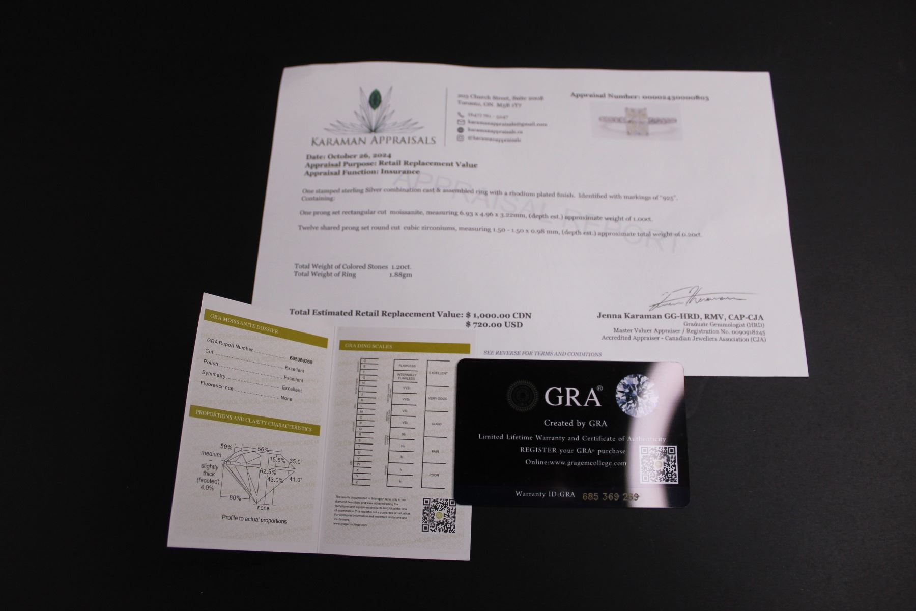 ^ 1.00 CT GRA Certified Rectangular Cut Moissanite VVS D Color With 12 Round Cut Cubic Zirconium Set in Shank Weighing a Total 0.20 CT Set in 925 Silver - Retail Value $1,000.00