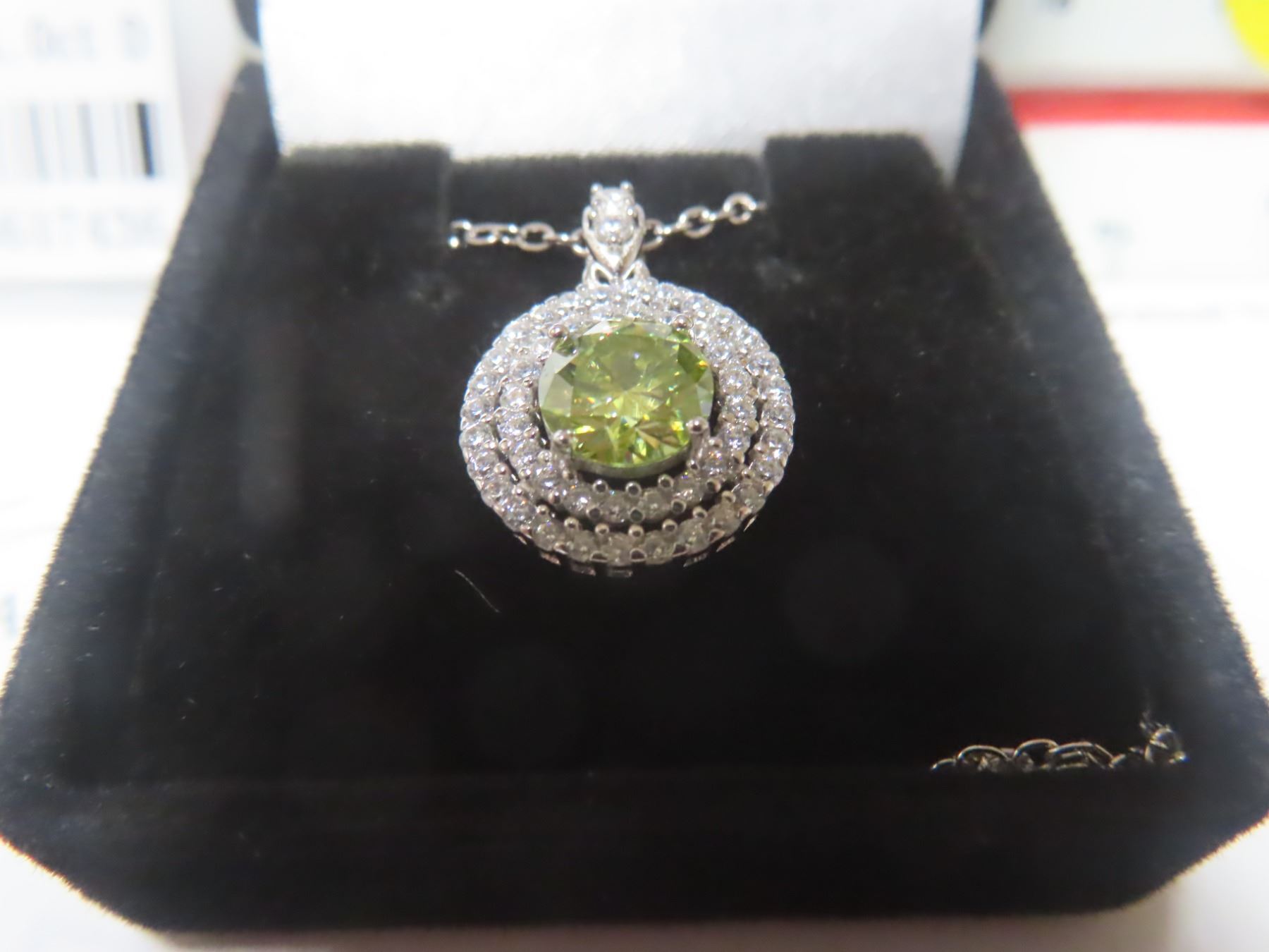 ROUND BRILLIANT CUT MOISSANITE STONE VVS YELLOW COLOR WITH 50 ROUND BRILLIANT CUT CUBIC ZIRCONIA SET IN DUAL ROUND HALOS WITH A FEW IN BALE SET IN 925 SILVER PENDANT RETAIL VALUE $1,070.00