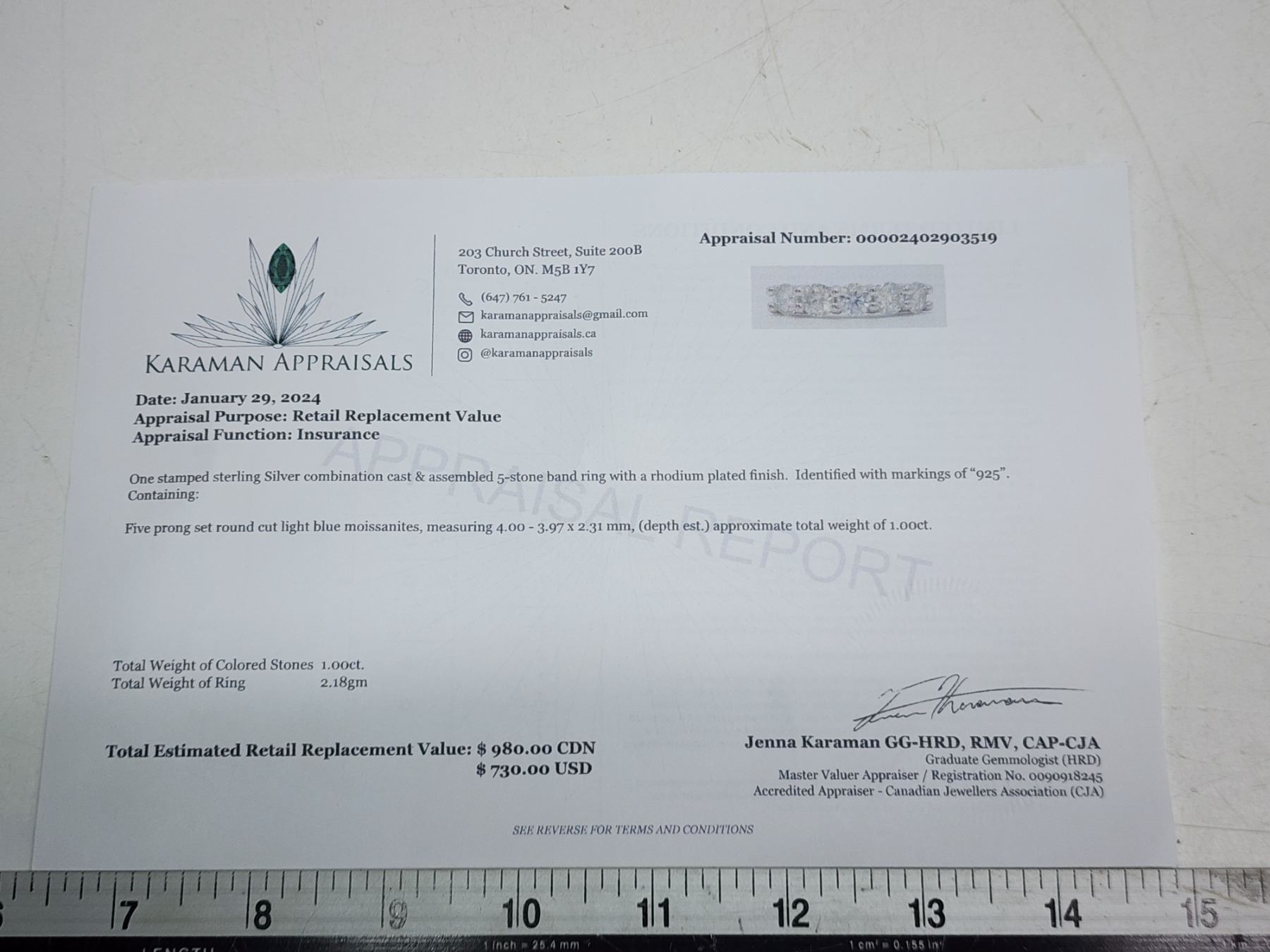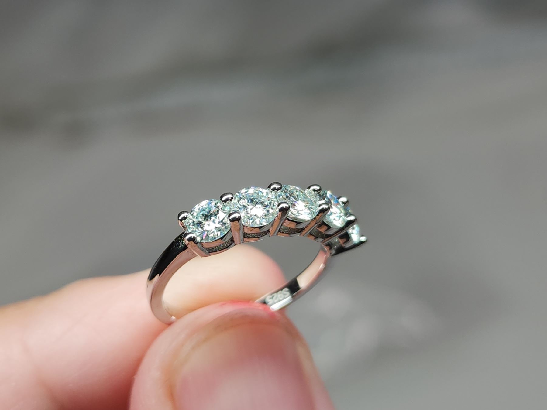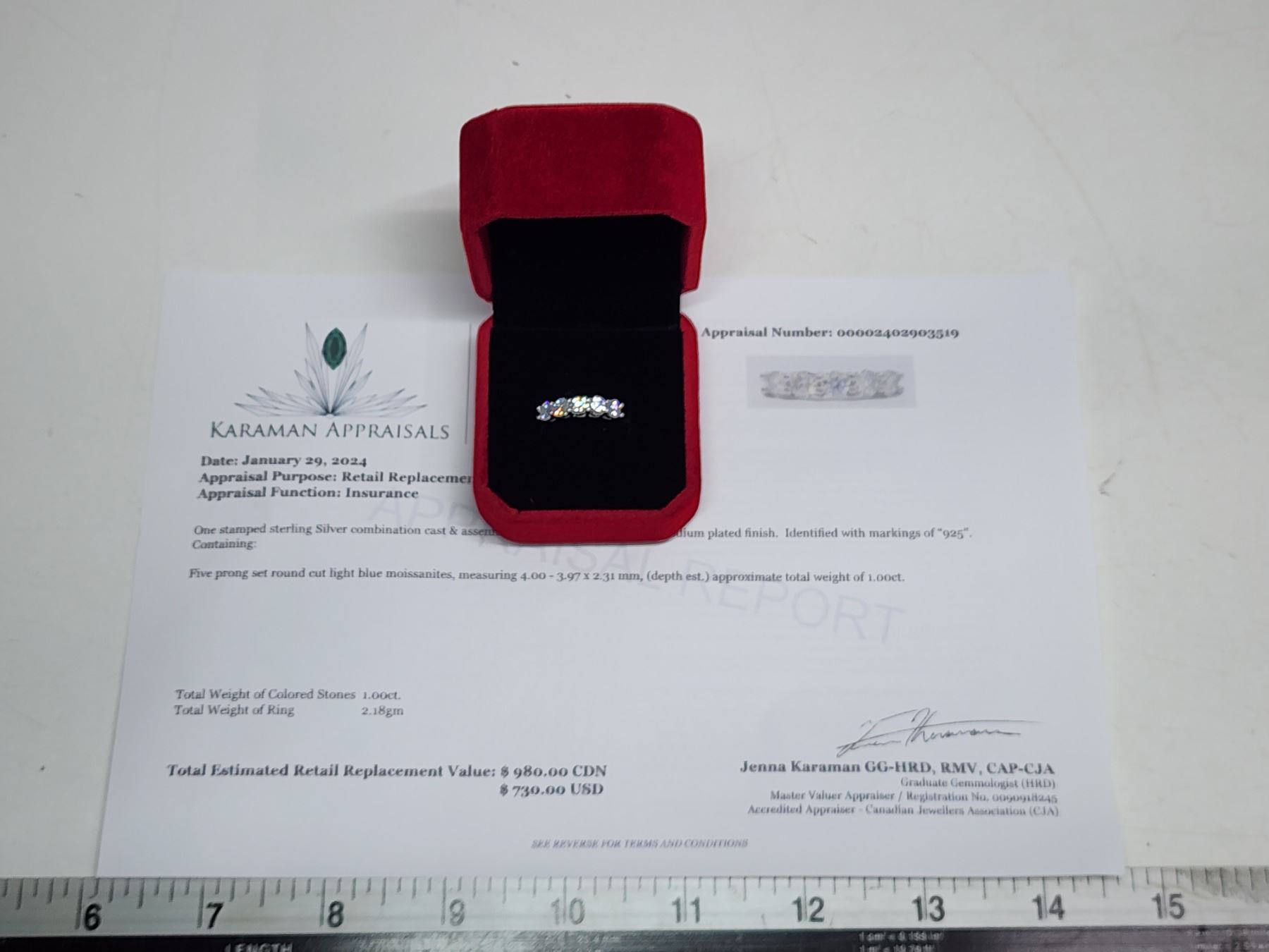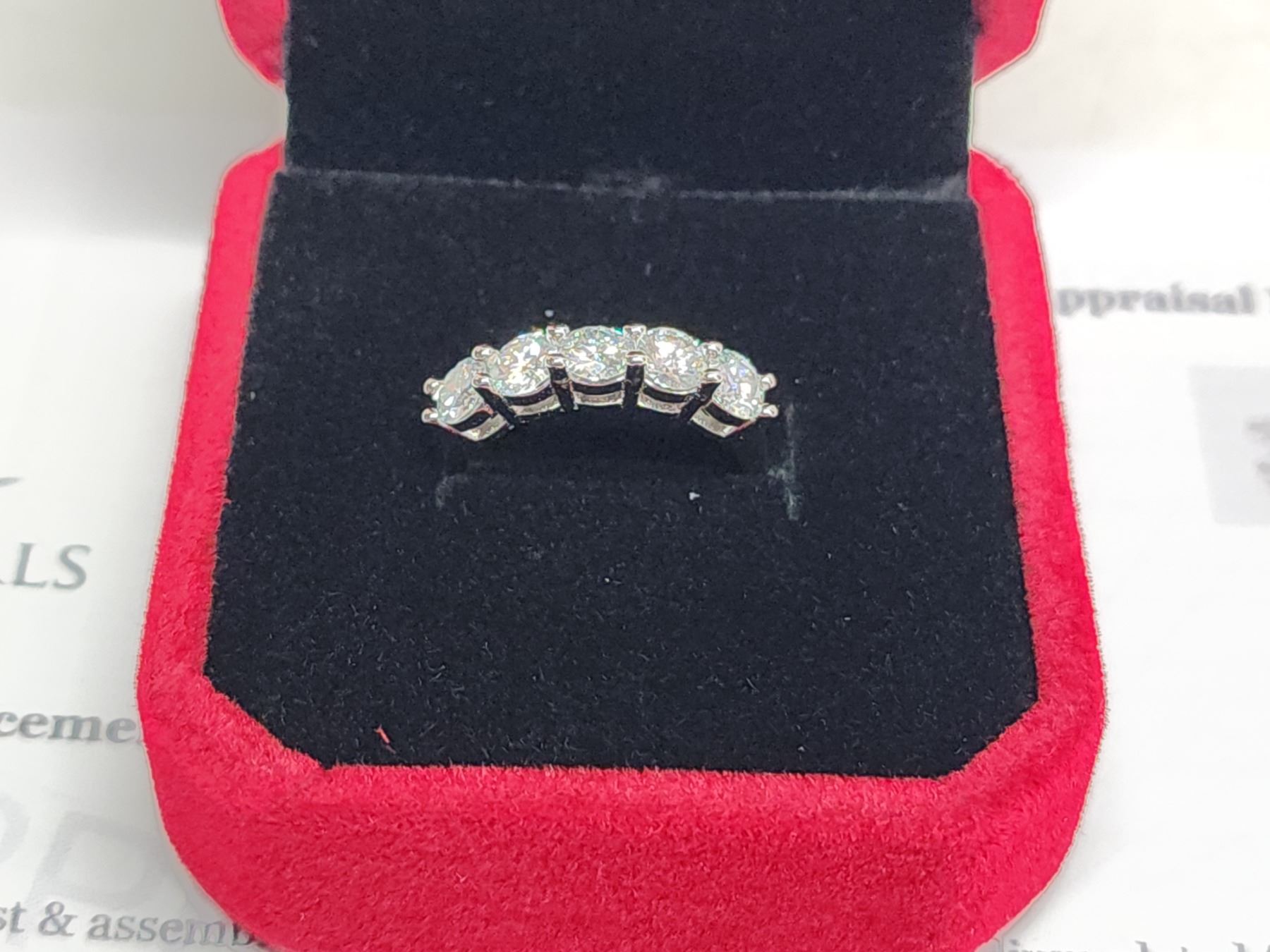 1.00 CT TW FOR THE 5 ROUND BRILLIANT CUT MOISSANITE VVS D COLOR SET IN 925 SILVER RING RETAIL VALUE $980.00
