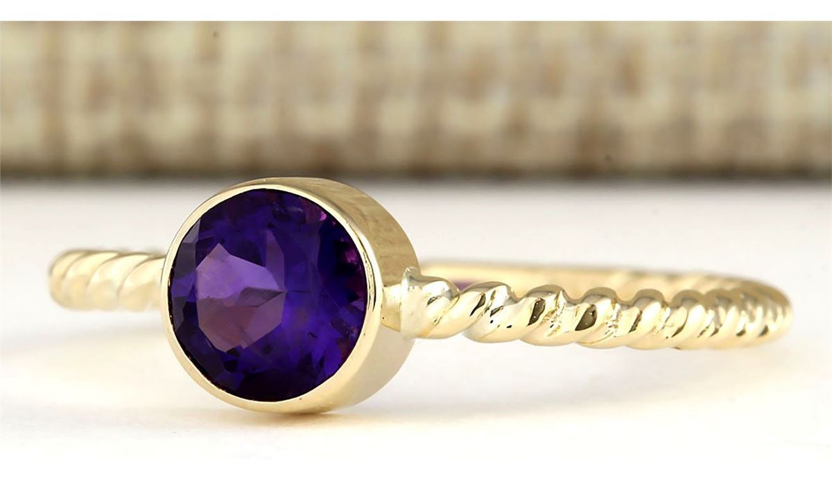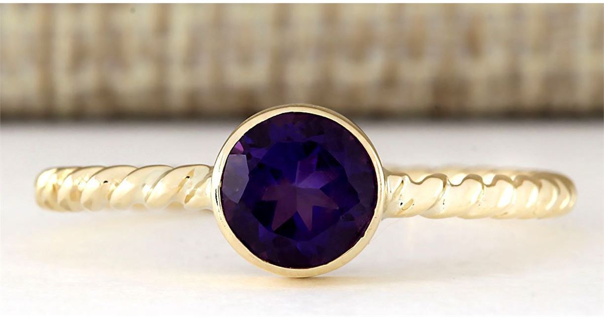 Stamped: 14K Ring Size: 7.25 Total Ring Weight: 2.2 Grams Gemstone Weight: Total Natural Amethyst Weight is 1.00ctw Main Stone Color: Purple Face Measures: 6.65x6.70mm SKU: [703217]
