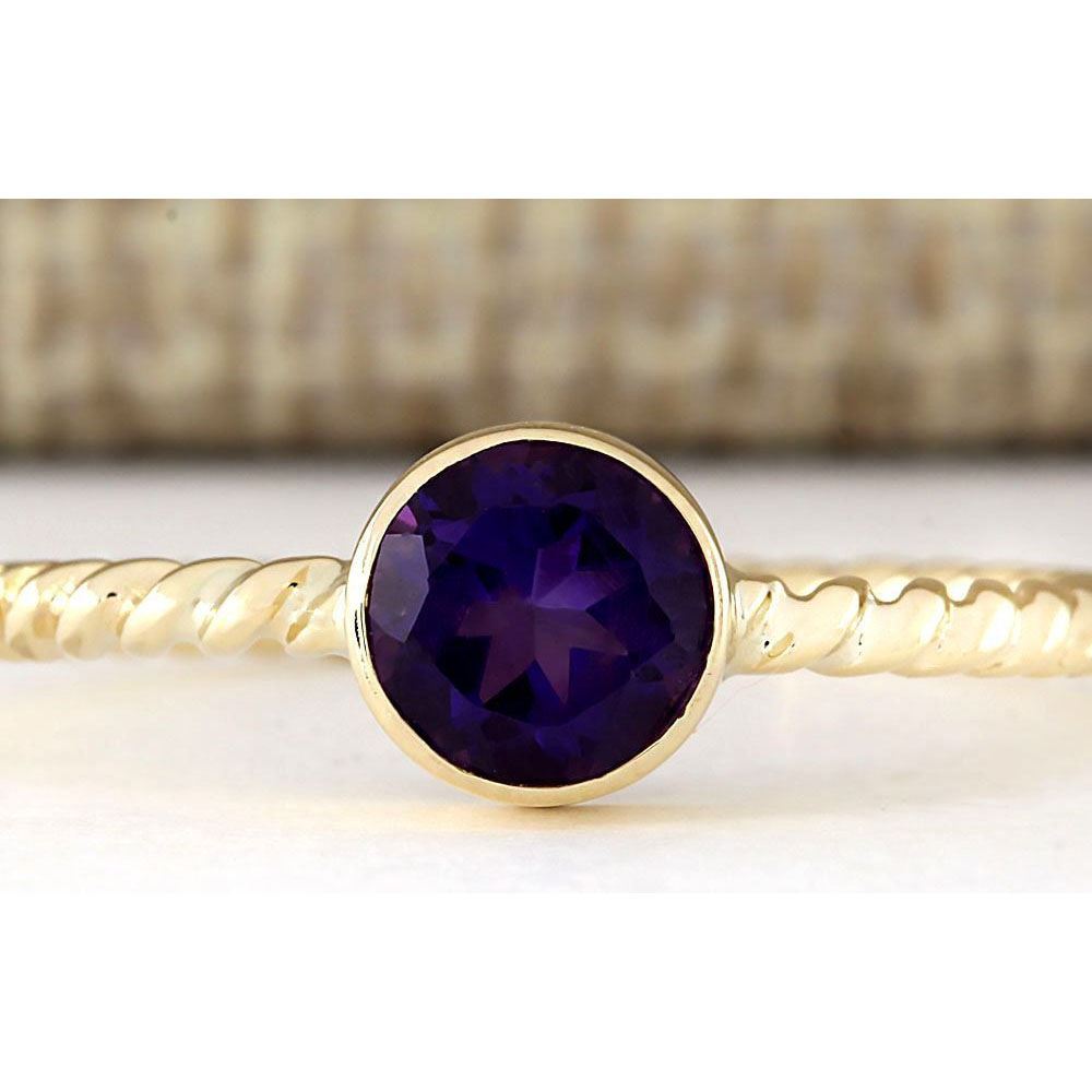 1.00 CTW Natural Amethyst Ring In 14k Yellow Gold