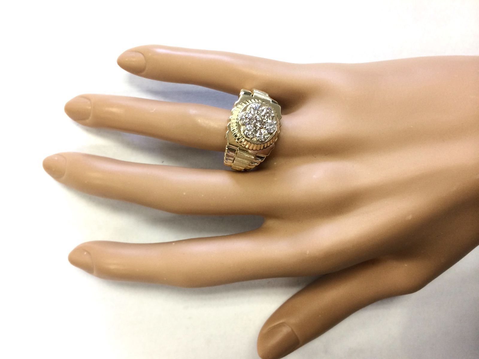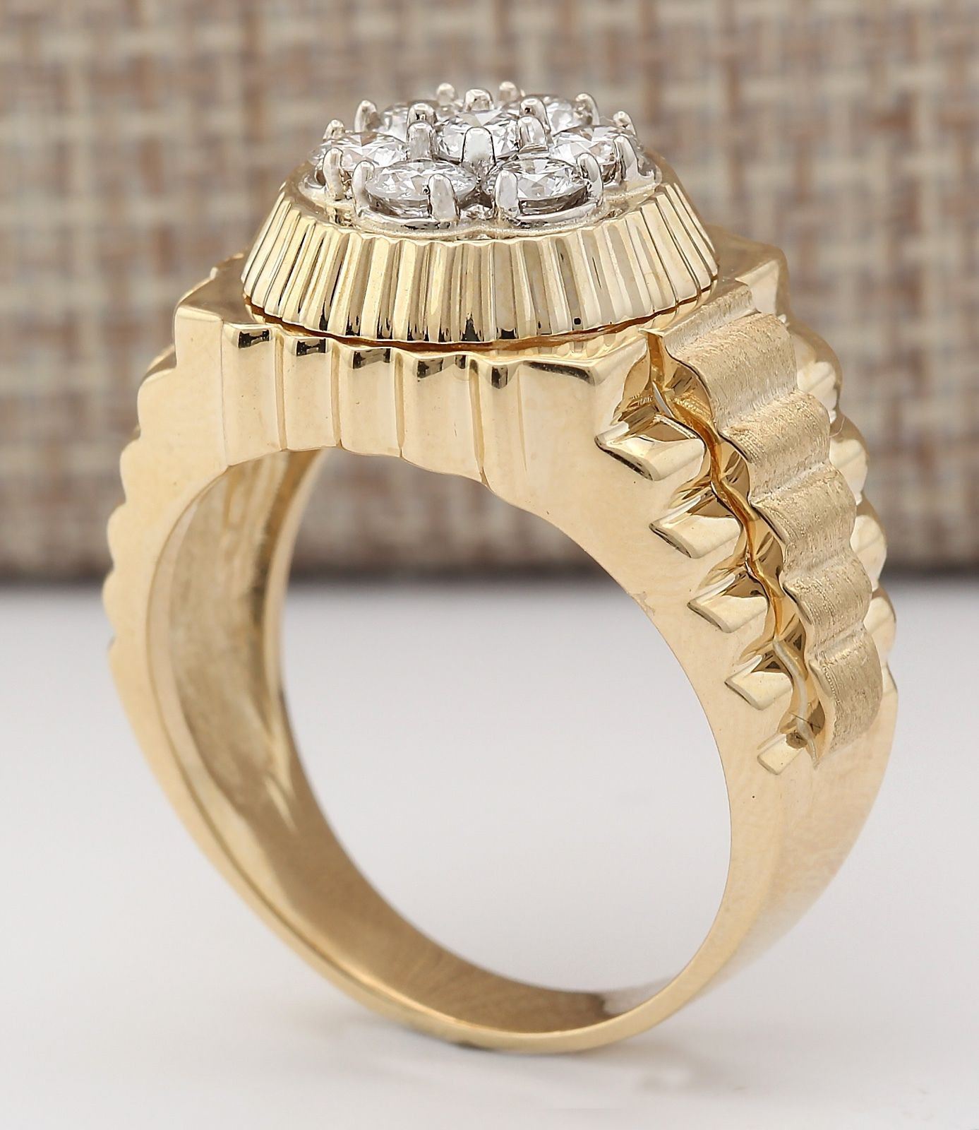 1.00 CTW Natural Mens Rolex Diamond Ring 14k Solid Yellow Gold