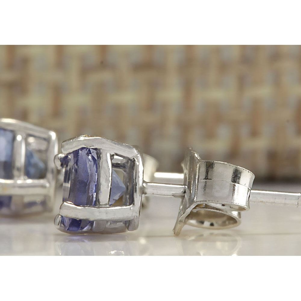 1.00 CTW Natural Tanzanite Earrings In 14K Solid White Gold