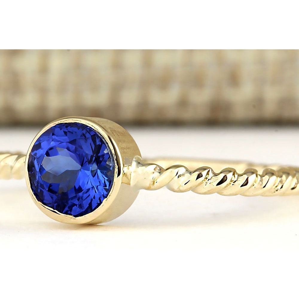 1.00 CTW Natural Tanzanite Ring In 18K Yellow Gold