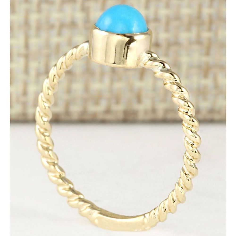 1.00 CTW Natural Turquoise Ring In 14k Yellow Gold