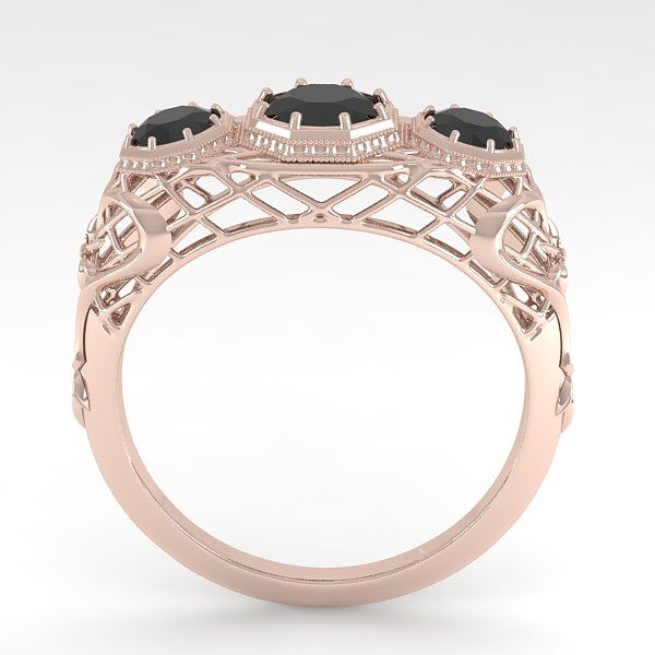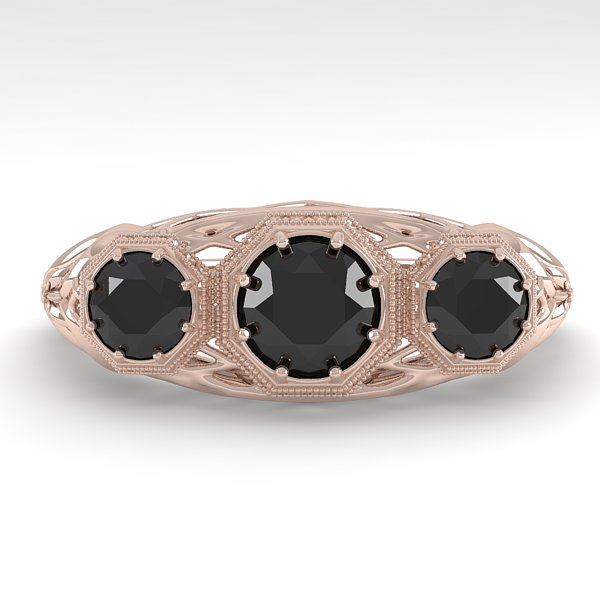 1.00 CTW Past Present Future Black Diamond Ring 18K Rose Gold ---- Luxury Designer Brand Ring Appraised Retail Price at $4,900 ---- SKU Number US36059 18k Rose gold Ring Size is 7, Ring measuring approx. Uniform, weighing in total approx. 4 grams. Made in the USA and is stamped 18k, Main stone 0.50 carat total weight containing 1 pieces of Black Opaque color with VS quality Round shape cut Diamond , Stone #2 0.5 carat total weight containing 2 pieces of H-I color with VS/SI quality Round shape cut