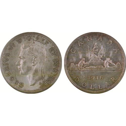 $1.00 1946 MS60 ICCS<Br>Light obverse field toning with darker legends and reverse toning on a bright background.
