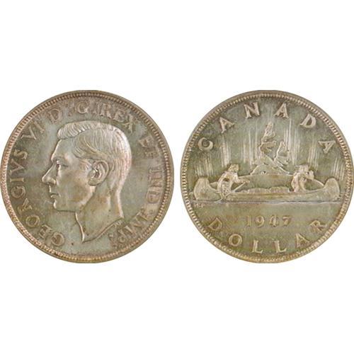 $1.00 1947 MS62 PCGS<Br>Blunt 7. This is an attractive piece that exhibits light magenta toning in the legends on the obverse, and pale toning on the reverse. Conservatively graded by PCGS, this