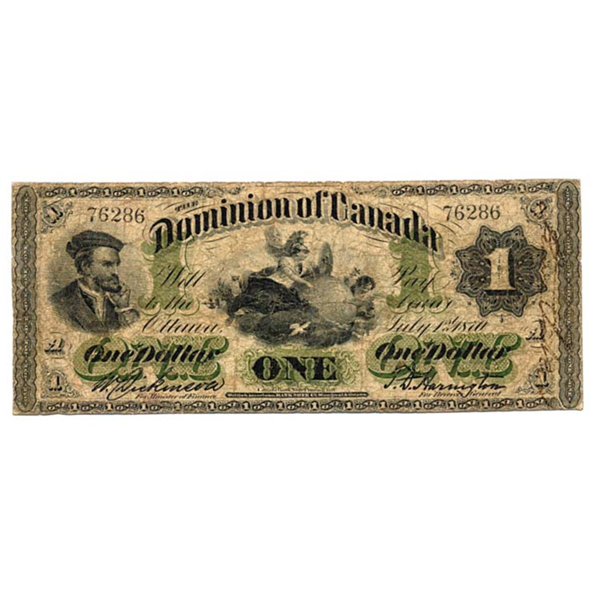 $1.00. July 1, 1870. DC-2d. Payable at Halifax. No. 76286/A. Rare and problem free.